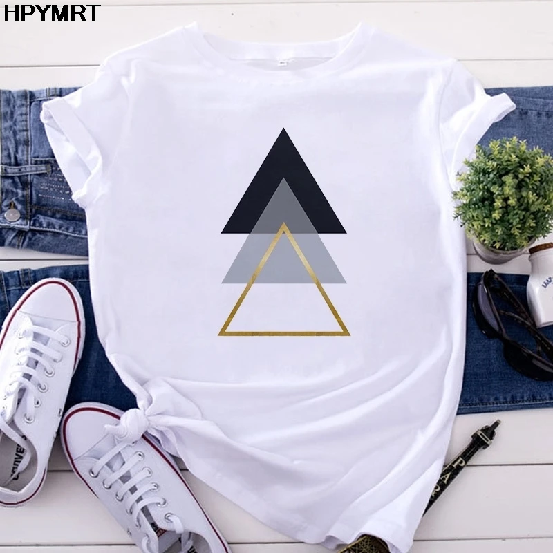 Новые женские футболки с геометрическим принтом, повседневные топы, Модная белая футболка в стиле Харадзюку, женская одежда с коротким рукавом