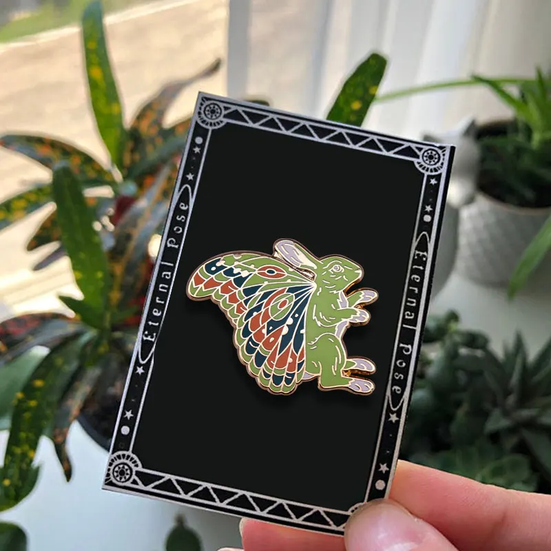 С украшением в виде крыльев бабочки; Банни эмали штырь зеленый крол...