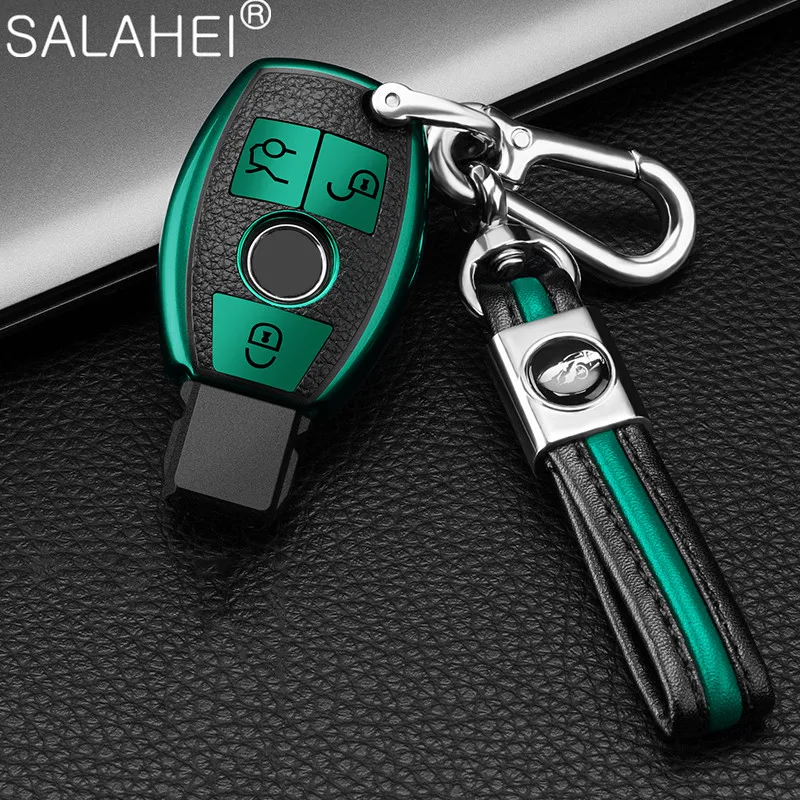 Новинка ТПУ + кожаный чехол для автомобильного ключа чехол для Merc...