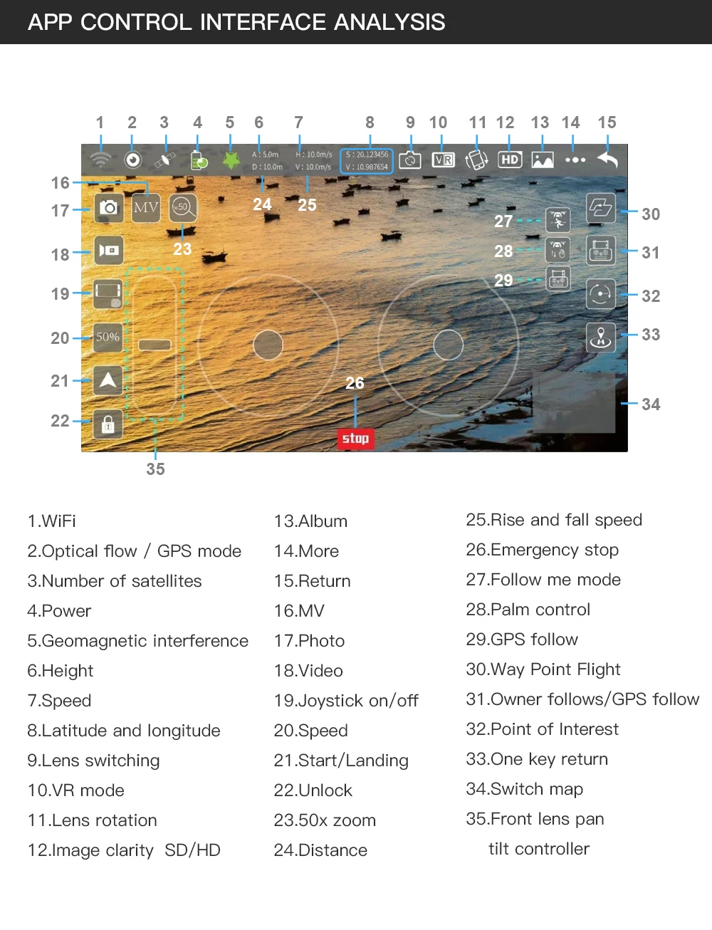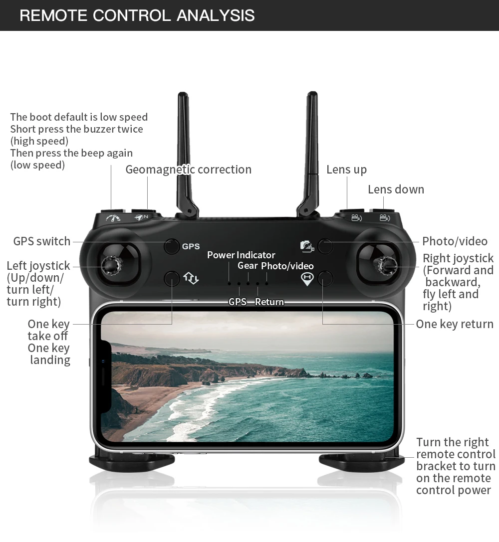 5G передача изображения HD, расстояние дистанционного управления 1500 метров. Усовершенствованная 5G технология передачи изображения, изображение передачи гладкое и прозрачное, вы можете смотреть аэрофотоснимки высокой четкости в реальном времени через ваш мобильный телефон, чувствовать горизонт с разных углов, И испытайте перспективу Божью!