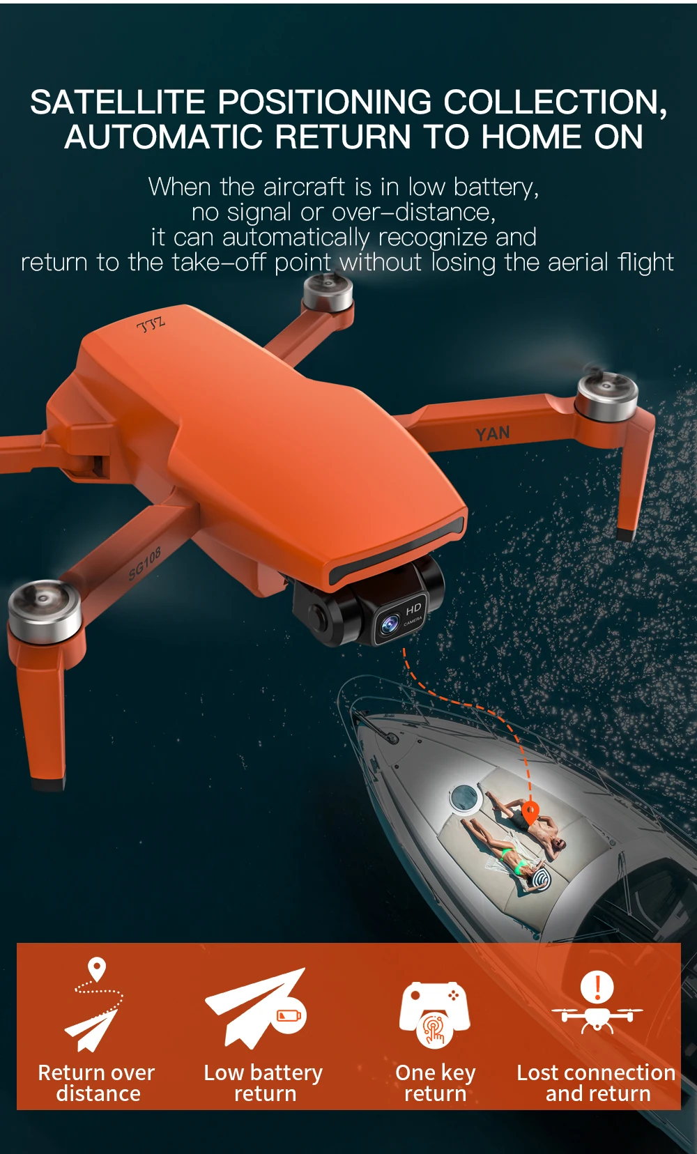 GPS + оптический поток двойного позиционирования: GPS не только позиционирование, но и стабилизирующая система для Дронов. SG108 pro использует двухрежимный спутниковый GPS позиционирование, поэтому новички могут легко начать работу.
