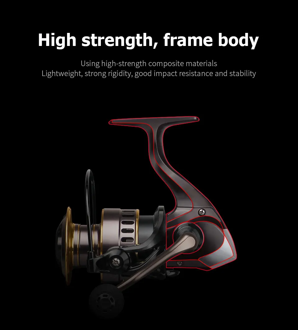 + Металлическая катушка, жирное кольцо направляющей линии, ручка из сплава, EVA grip, имеют корпус высокого качества.