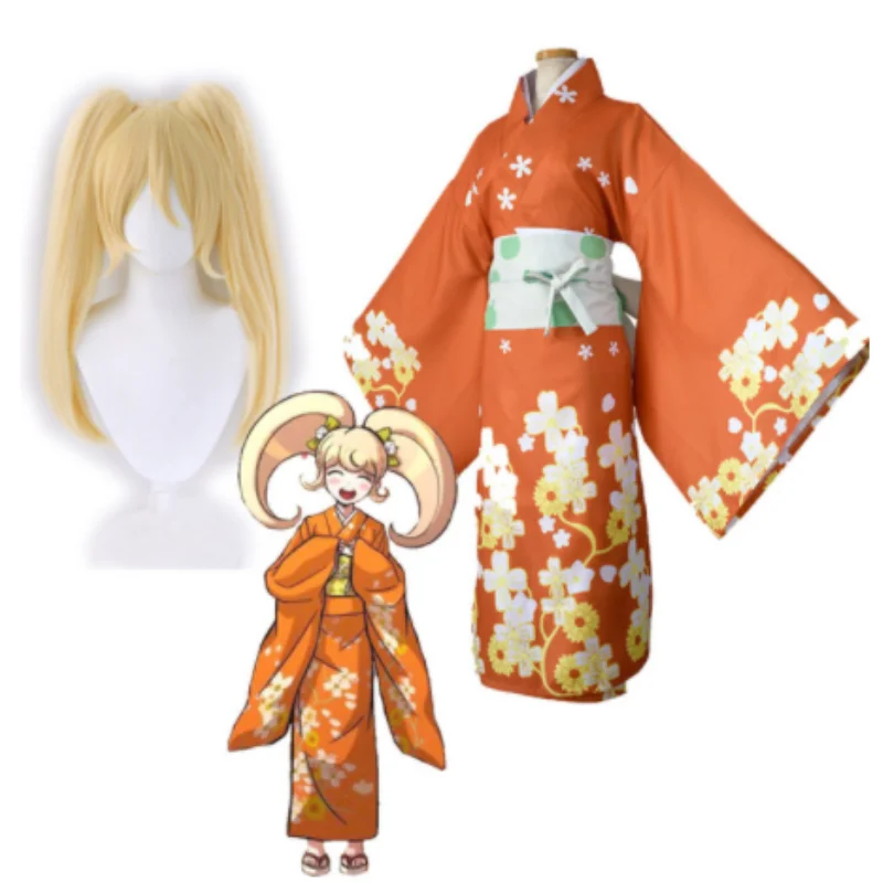 Женский костюм аниме Saionji Hiyoko для косплея данганронпа 2, косплей костюм хийоко кимоно Сайондзи, японские парики