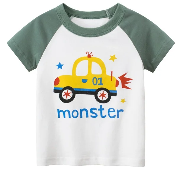 2021 летние футболки для маленьких мальчиков, 100% хлопок, с короткими рукавами, с изображением автомобиля, автобуса, грузовика, детская майка с героями мультфильмов, одежда для детей от 1 до 9 лет