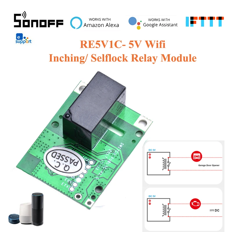 Переключатель Sonoff RE5V1C с функцией самоблокировки, 5 в постоянного тока, Поддержка приложения eWelink Alexa Google Home IFTTT