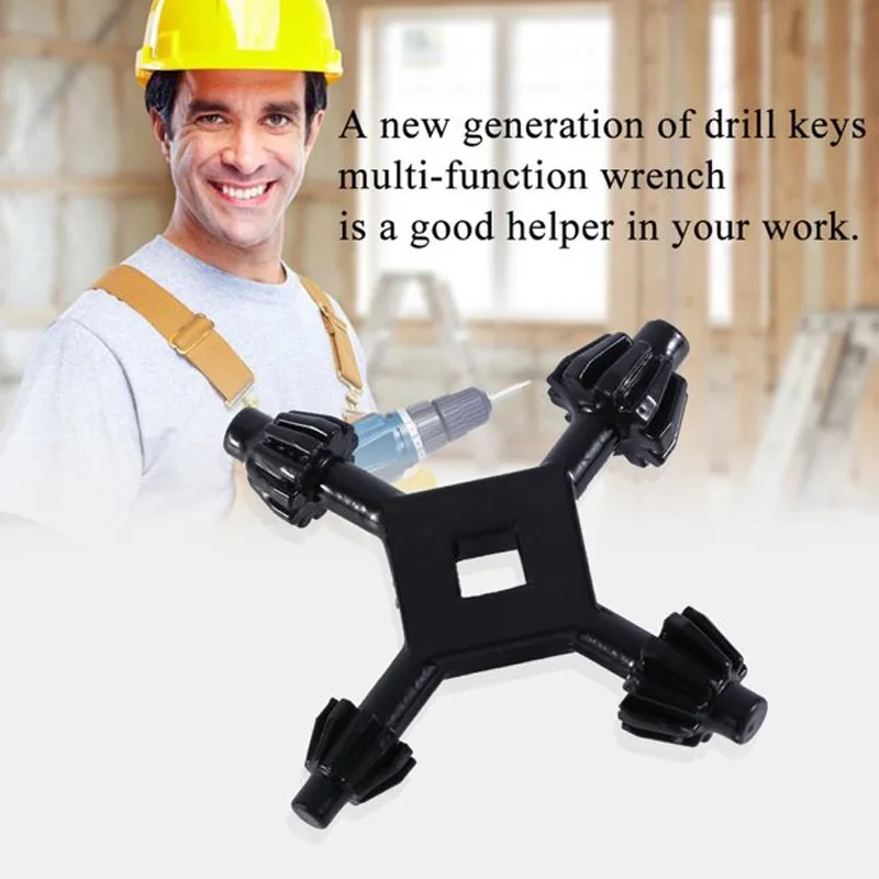 Универсальный сверлильный патрон 4 в 1, ключ с четырьмя головками, полезный электроинструмент, многофункциональный инструмент для сверлильных патронов 61013 мм