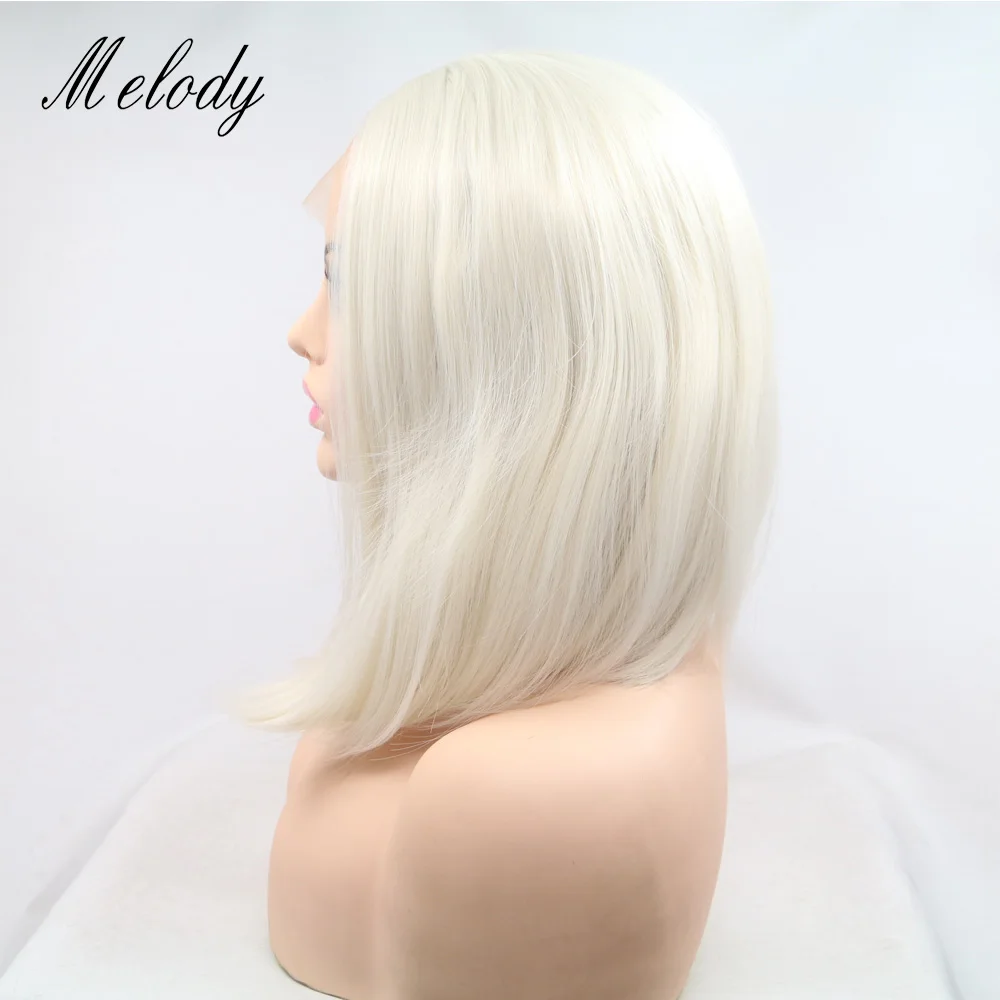 Мелодия Парики 14 "дюймов прямой короткий боб парик Платиновые светлые волосы синтетический кружевной передний парик белый цвет со средней частью