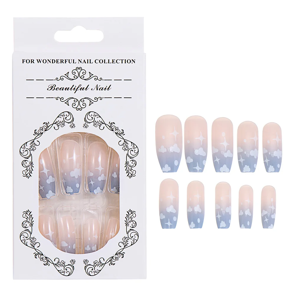 24 шт. Длинные накладные ногти для балерины голубое небо и белые облака Дизайн полное покрытие накладные ногти на ногти с клеем
