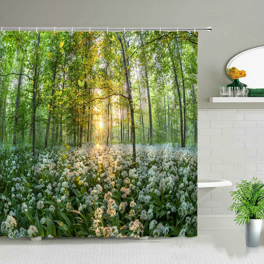 Занавеска для душа с цветочным принтом, s Весенняя декоративная зан...