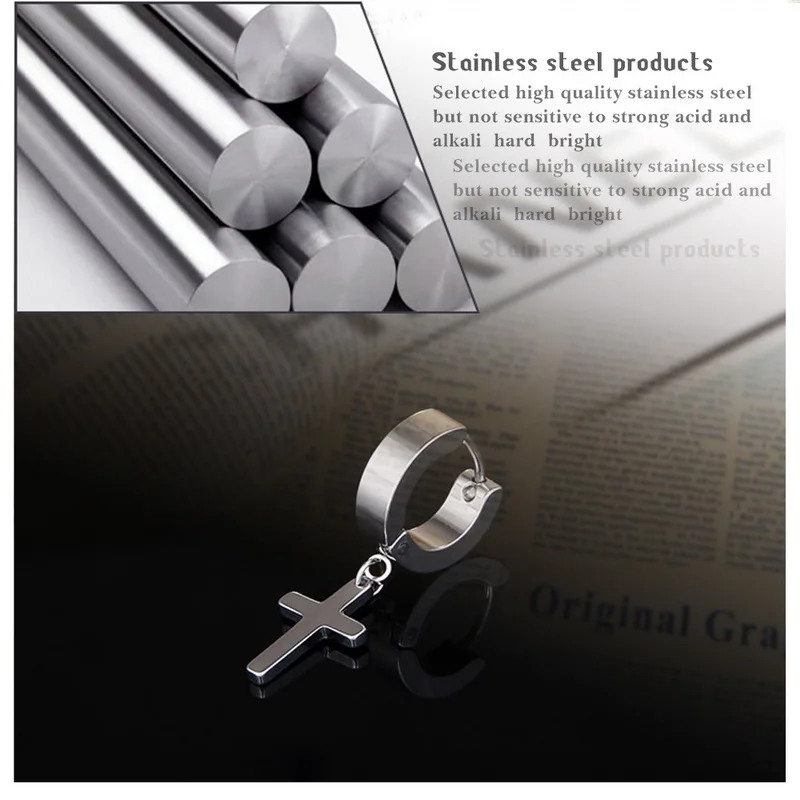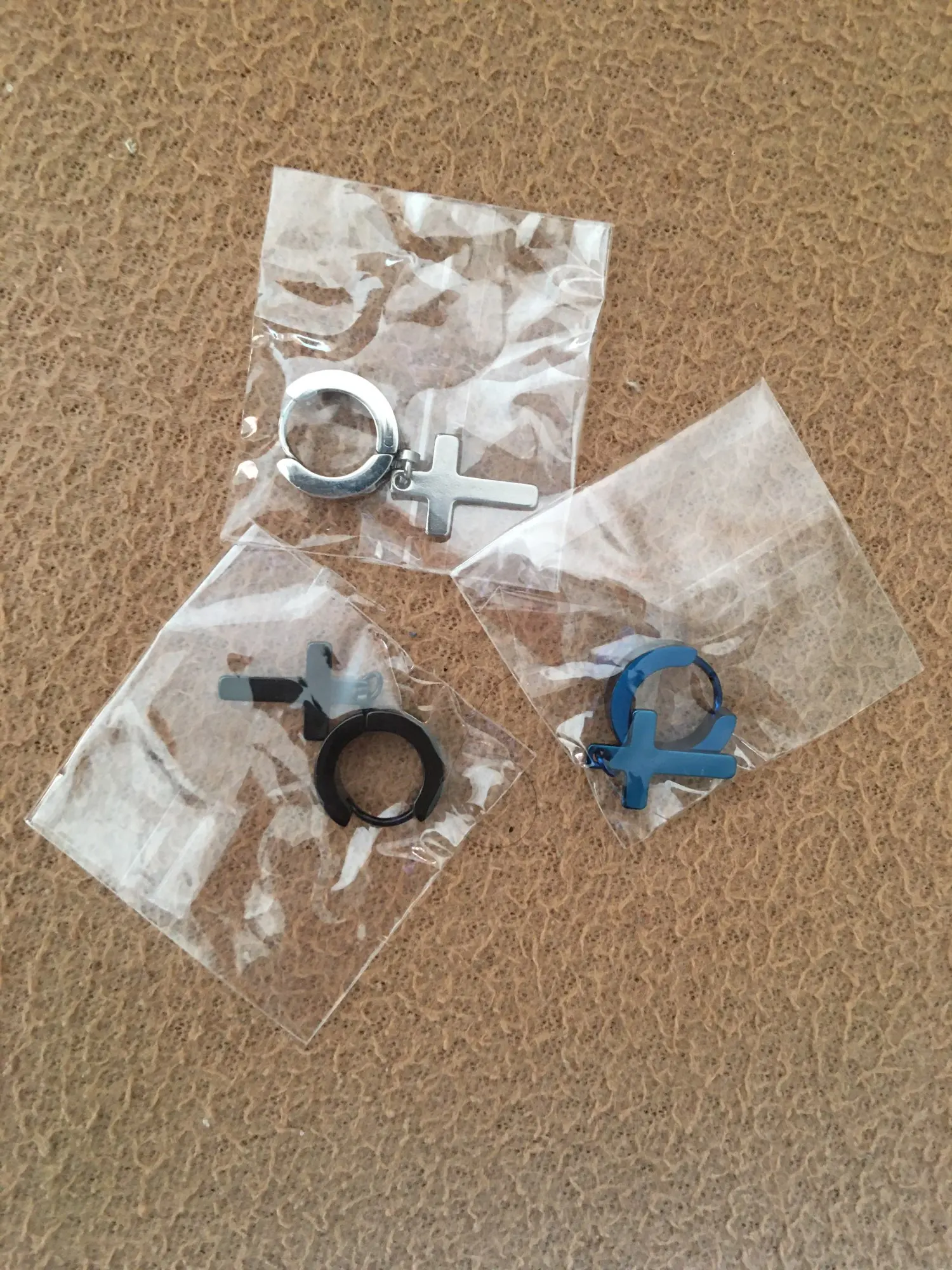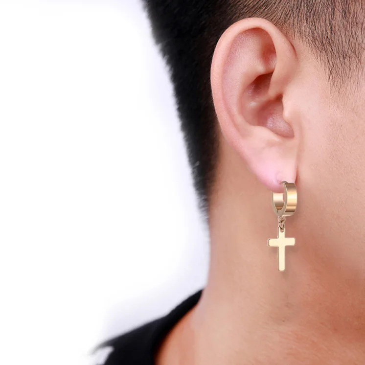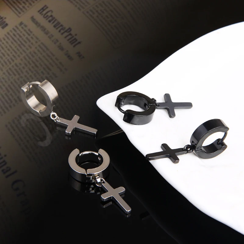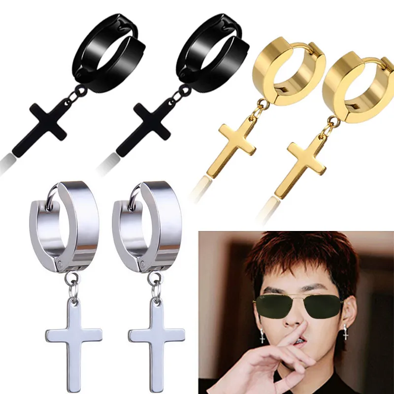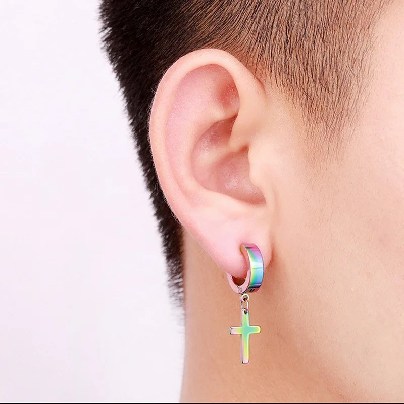 Серьги-гвоздики Rinhoo из нержавеющей стали для мужчин и женщин, модные разноцветные уличные серьги в стиле хип-хоп в стиле панк с крестом, ювелирное изделие