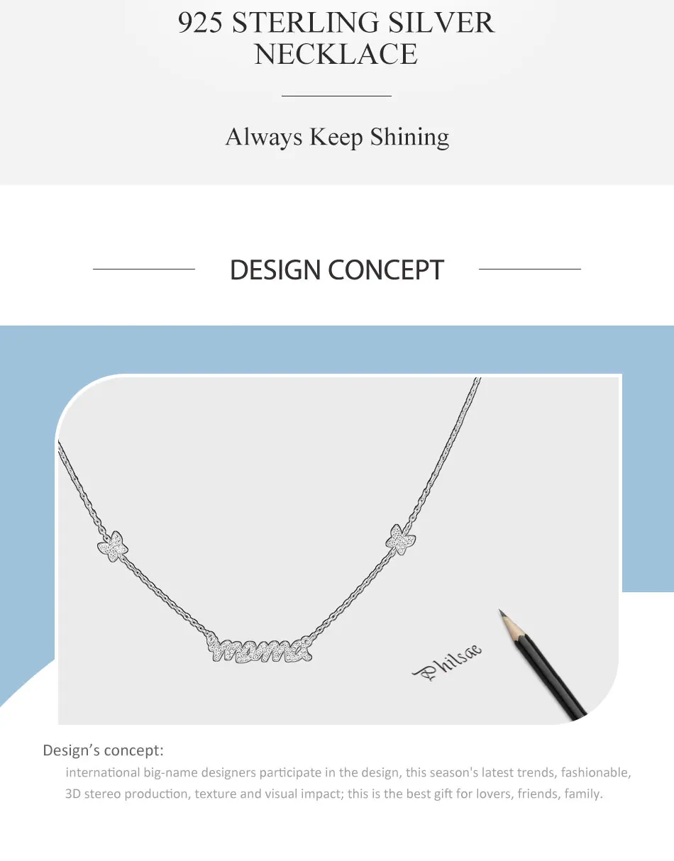 Цепочка с кулоном в виде бабочки для мамы, из серебра 925 пробы