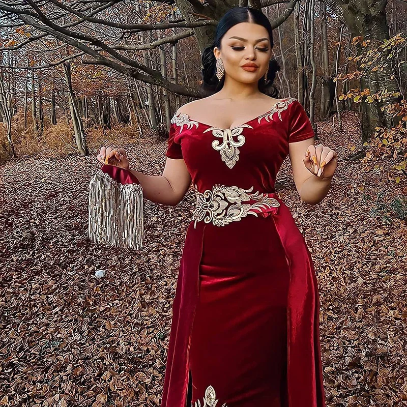 SoDigne бордовый Арабский Русалка бархат вечернее платье для девочек, 4 предмета в комплекте со юбка Разделение Аппликация Кружева платья для выпускного бала с кисточками алжирский наряд icon star icon star icon star icon star icon star