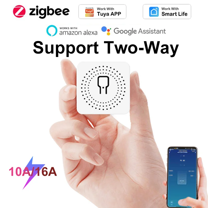 Выключатель Tuya Zigbee, мини-светильник ключатель с модулем переключения, 10 А16 А, двухсторонний, для умного дома, работает с Alexa Google Home