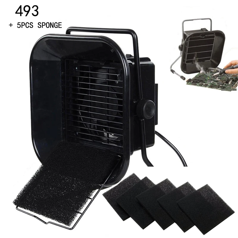 Высококачественный 493 паяльный поглотитель дыма, вытяжка электростатического разряда с 5 бесплатными фильтрующими губками с активированным углем, 220 В110 В для переделки