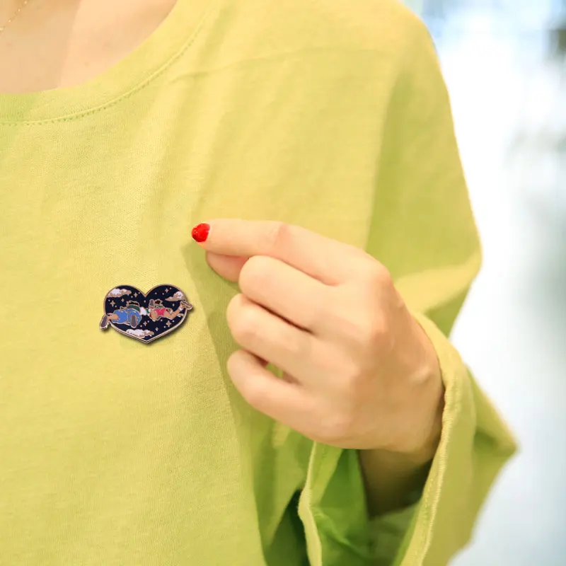 Унесенные призраками Хаку и Тихиро летать в небе брошь, эмалированный штифт незабываемые значок Love Ghibli любителей аниме милые дополнение