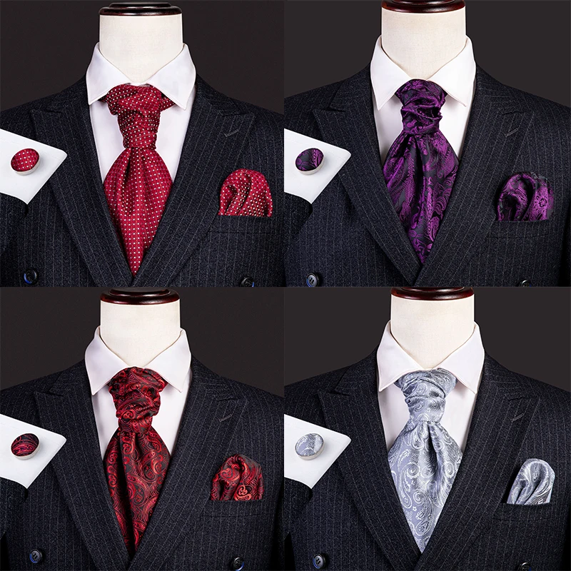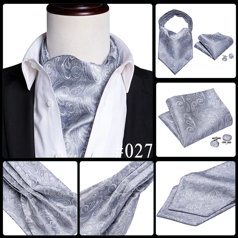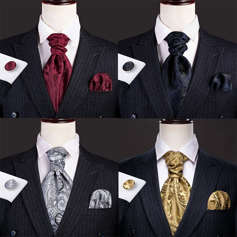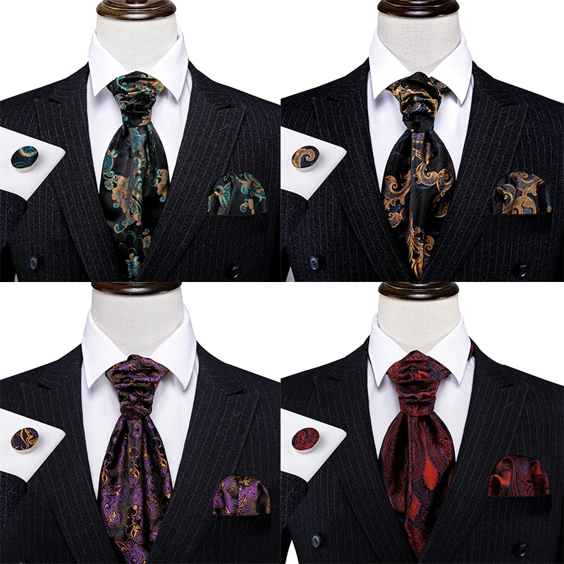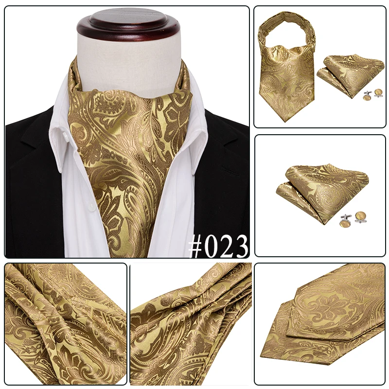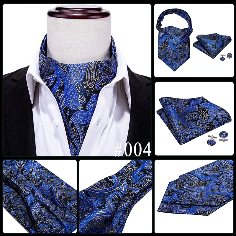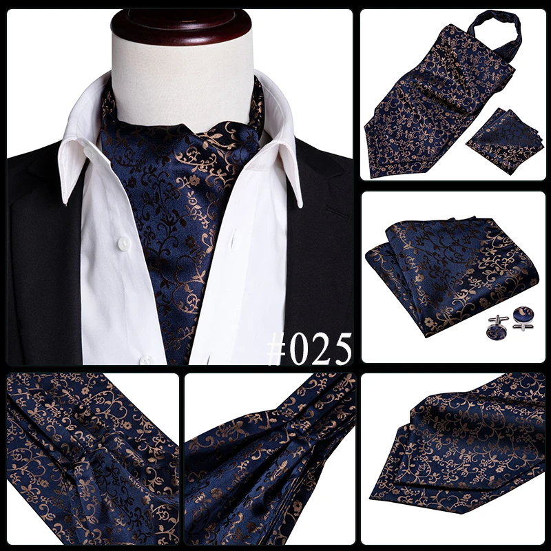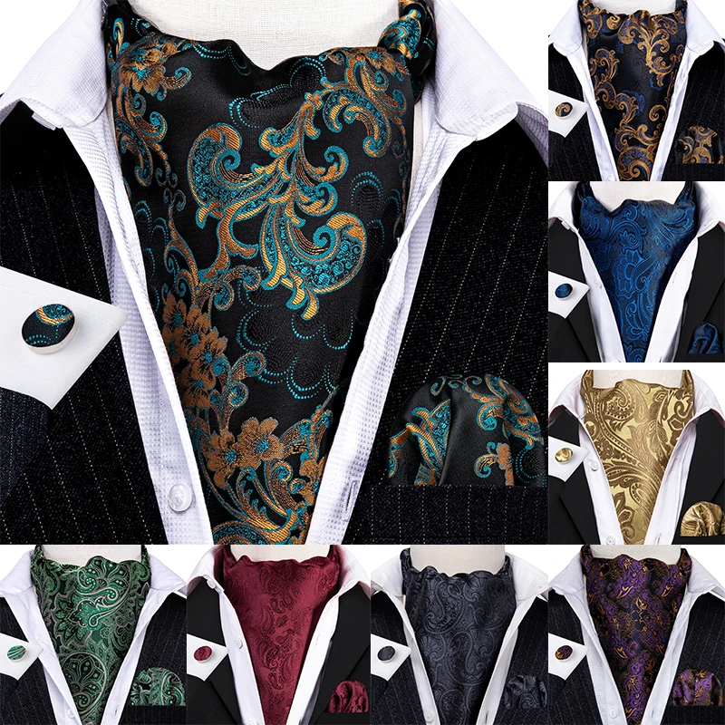 Галстук мужской, жаккардовый, синий, зеленый, золотистый, Шелковый шейный платок Аскот, квадратные запонки для свадебной вечеринки Barry.Wang