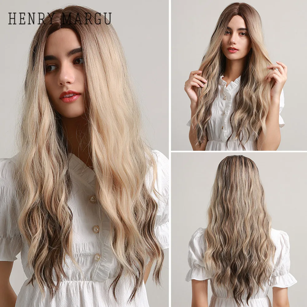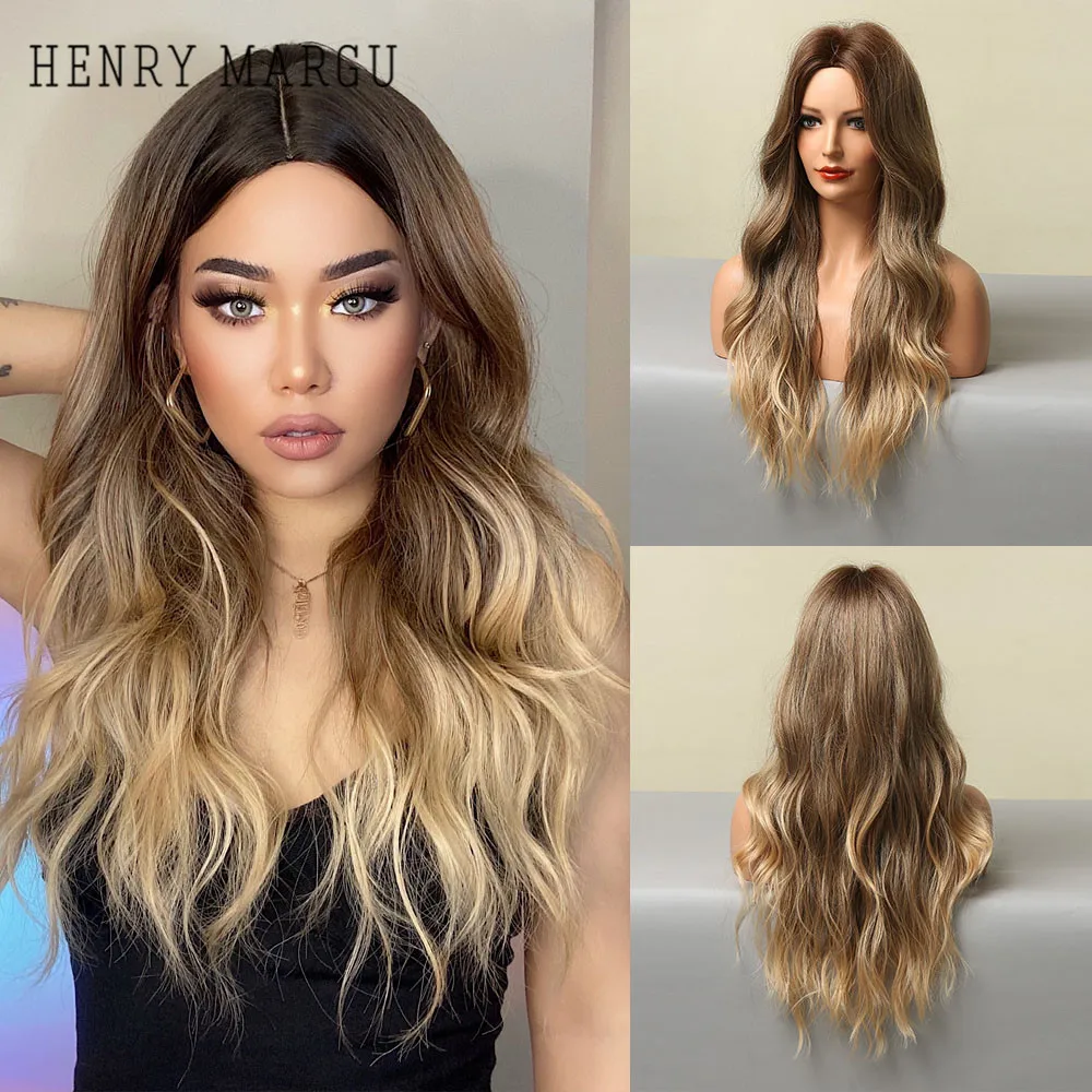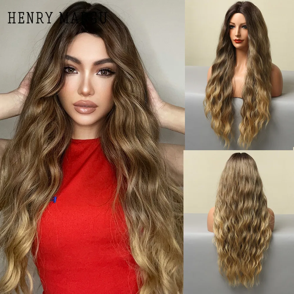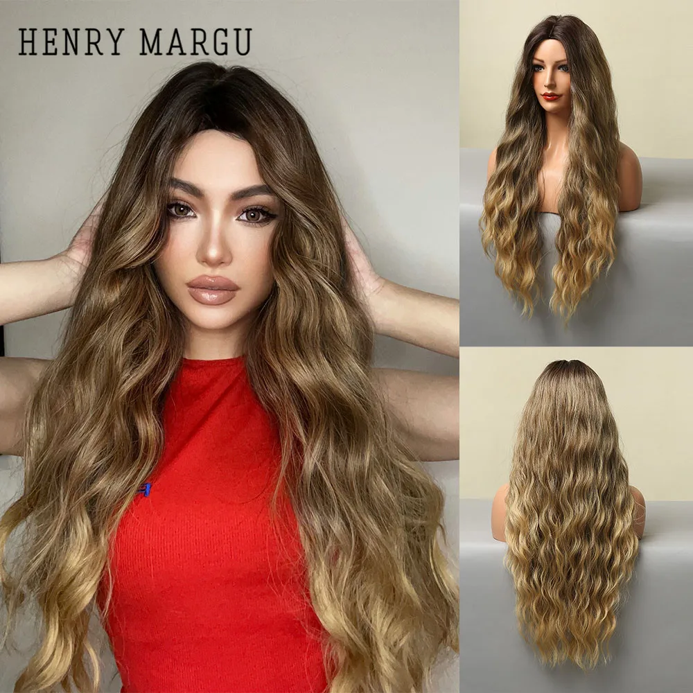 Длинные волнистые синтетические парики HENRY MARGU, коричневые, золотистые, волнистые, натуральные волосы для женщин, повседневные, косплей, вечерние, термостойкие волосы