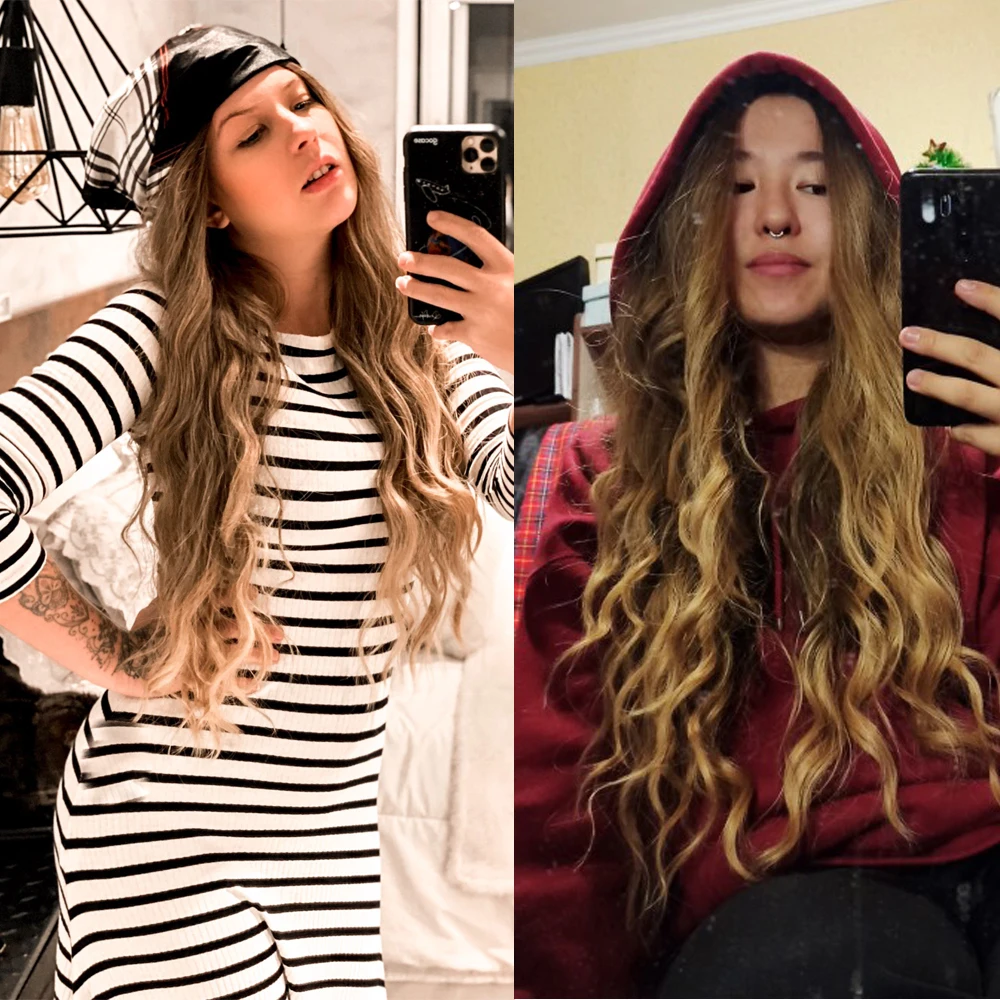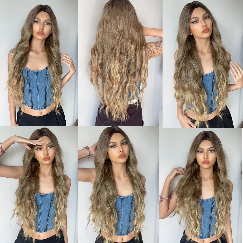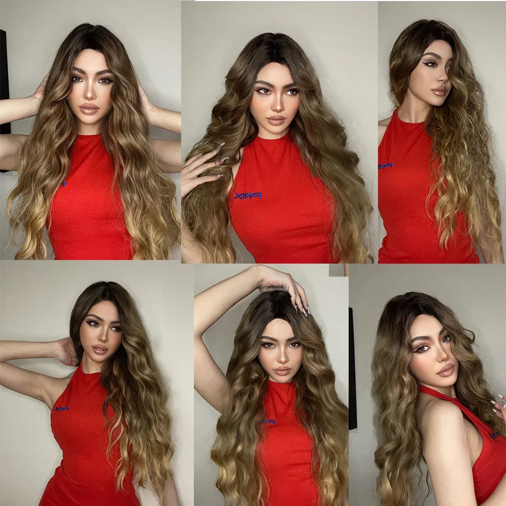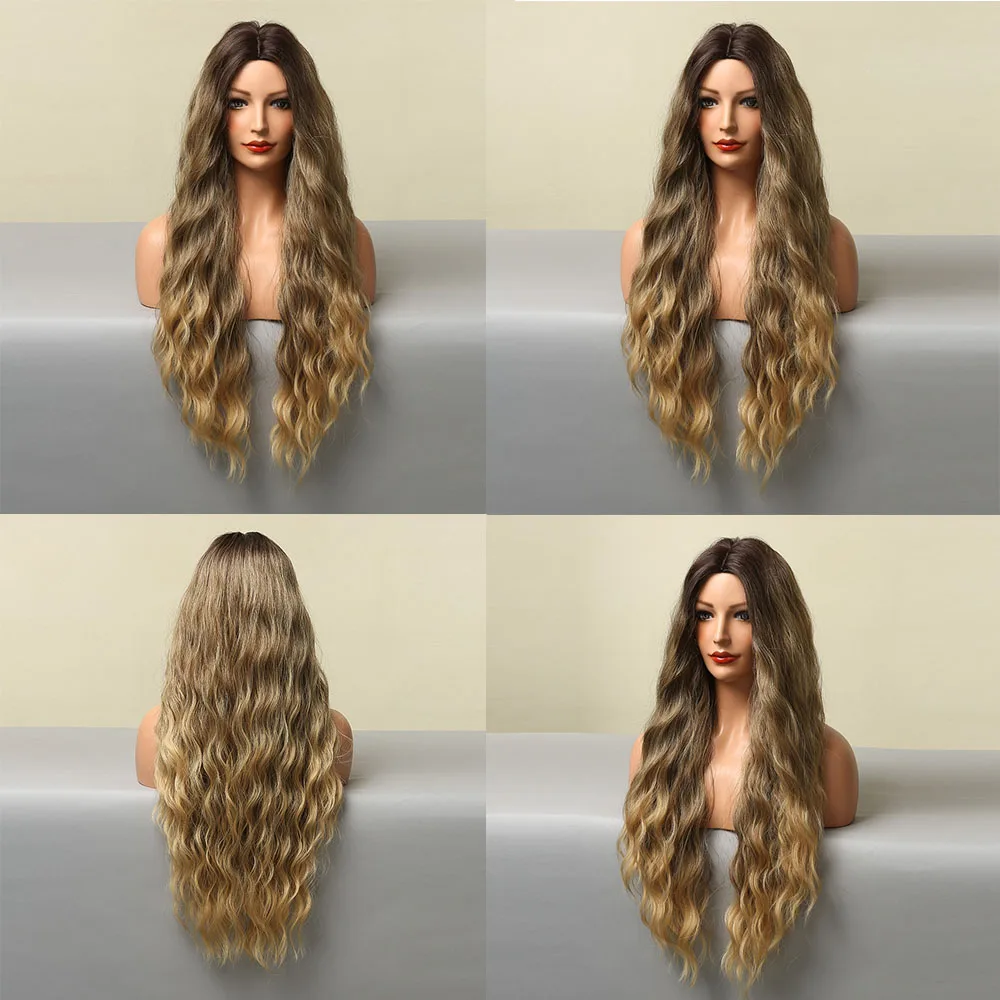 Длинные волнистые синтетические парики henmargu, коричневые золотистые волнистые натуральные волосы для женщин, парик для ежедневного косплевечерние, термостойкие волосы