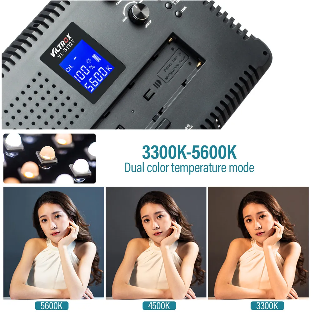VILTROX VL-S192T светодиодный светильник. Он принимает 192 шт. высококачественные светодиодный лампы высокой яркости, широкий диапазон облучения и мягкий светильник.