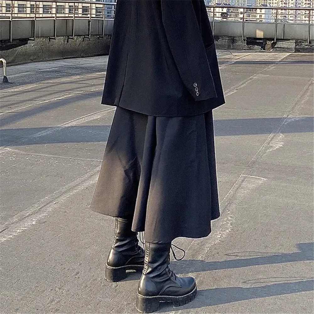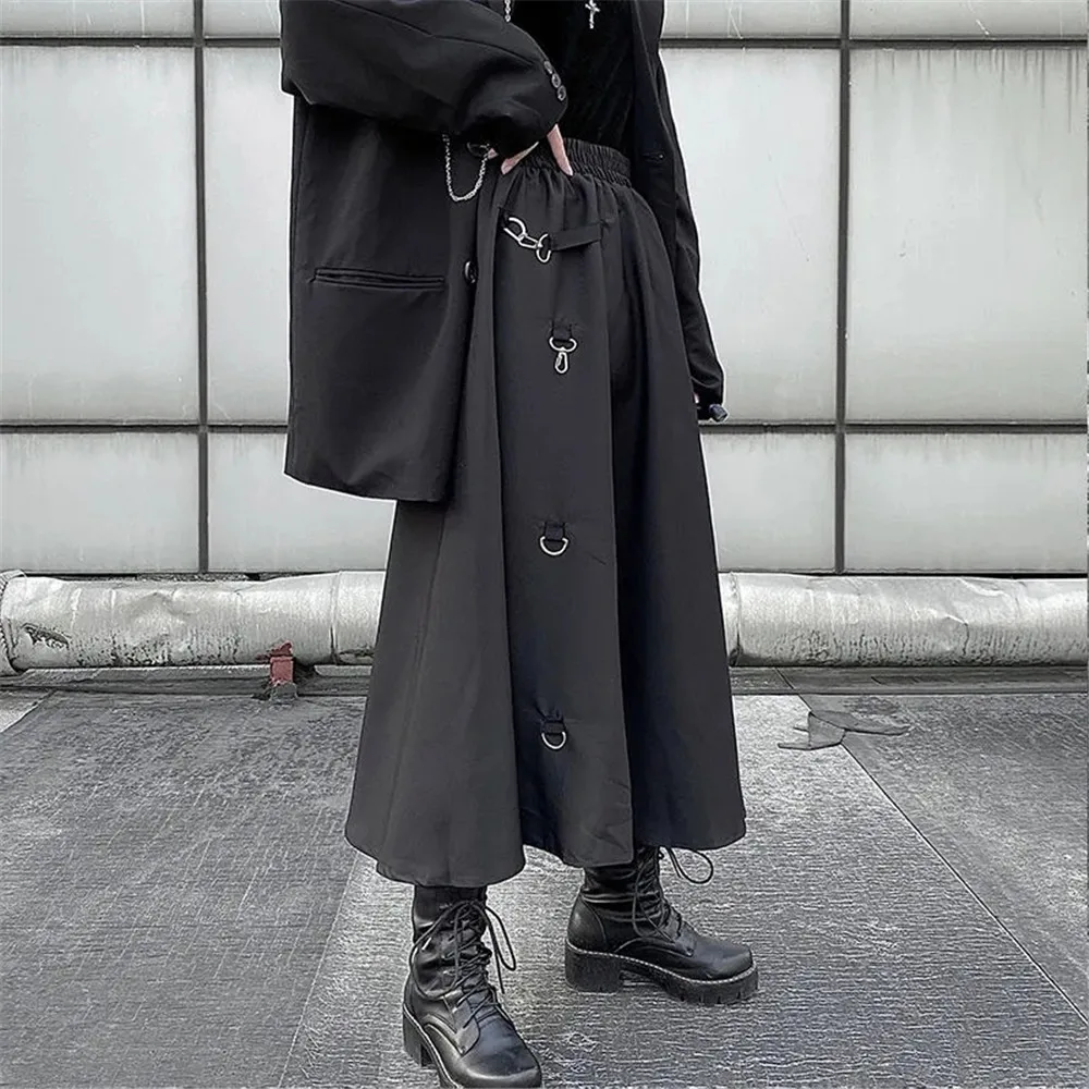Юбка-карго Женская свободного покроя в стиле хип-хоп, повседневная Готическая длинная темная юбка в стиле панк, с эластичным завышенным поясом, Корейская уличная одежда, черный цвет, 2021