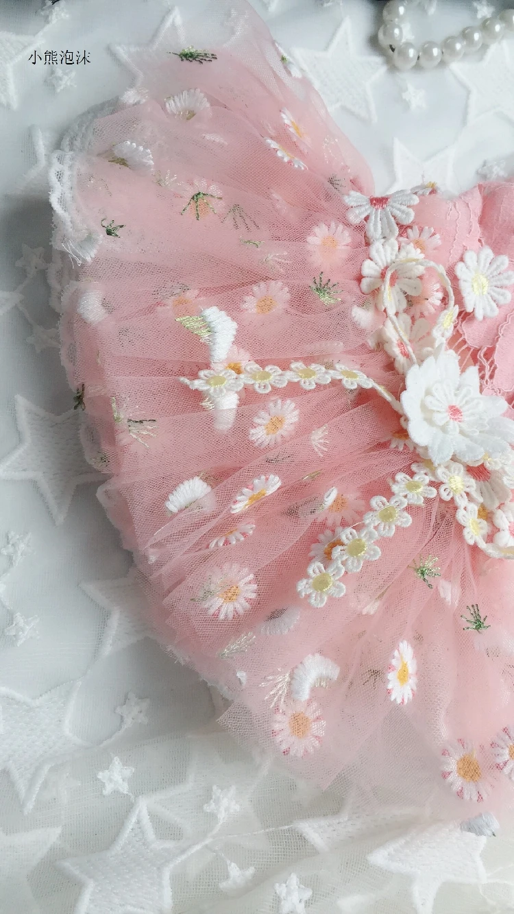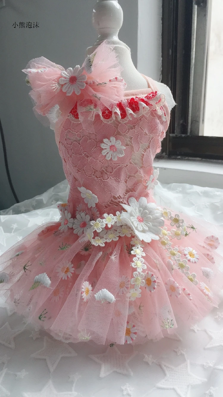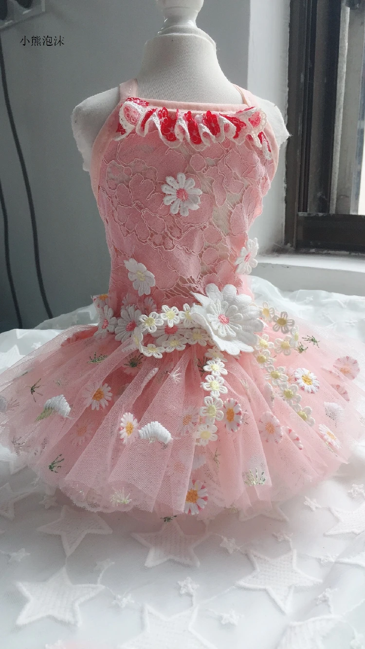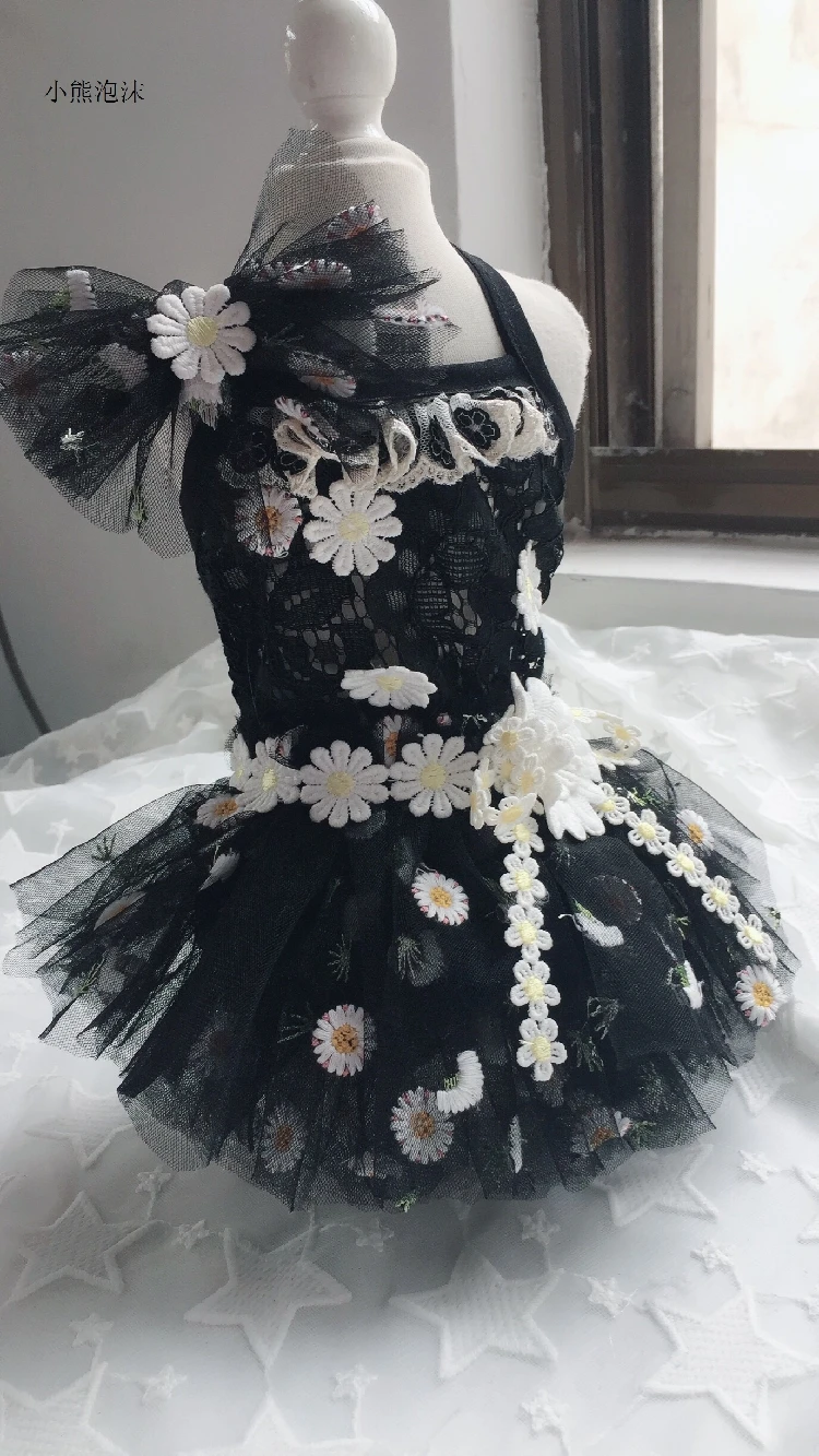 Модное розовое и черное платье принцессы на бретельках с изображением щенка для маленькой собаки, кружевное платье-пачка с ромашками, одежда для собак, верхняя одежда для чихуахуа, Тедди