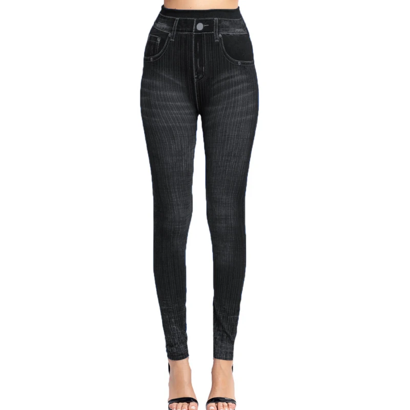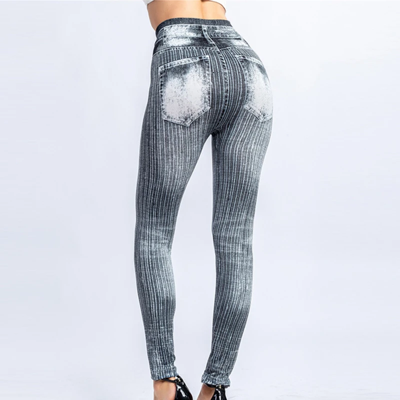 Большой Размеры 3XL Высокая Талия Брюки, имитирующие джинсы колготк...