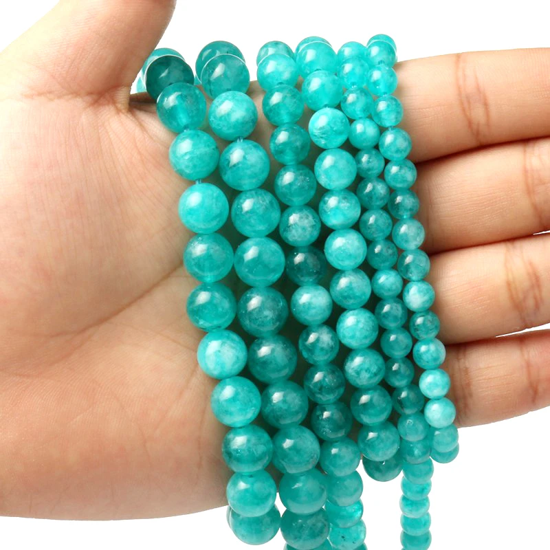 Название:Круглые бусины синего амазонита из натурального минерального камня для изготовления ювелирных изделий DIY аксессуары для браслетов 6 8 10 мм 15 дюймов
