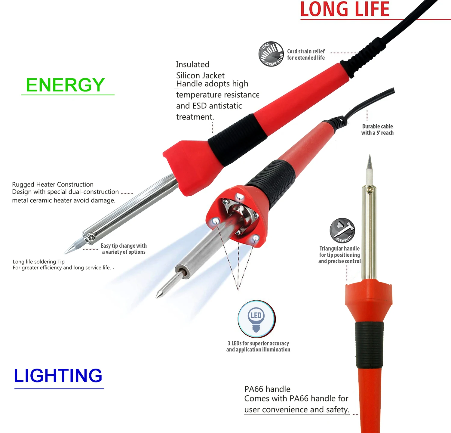 Паяльник Электрический со светодиодный светильник кой, 304060 Вт, 110 В