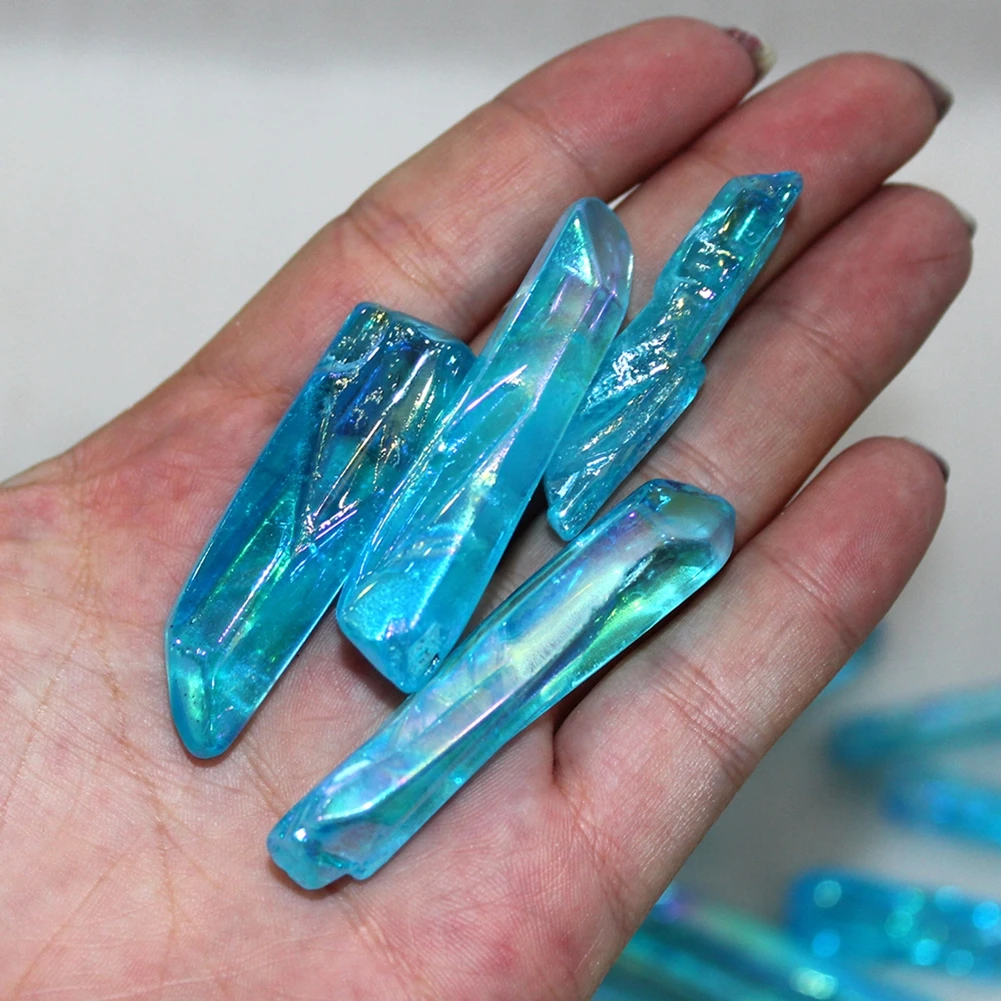 100% Природный рок-кристалл кварца Красивые украшения. Уникальное представление о природе. Подходит для дегаузинга. Подходит для рукоделия в качестве подарка для себя или ваших друзей. Материал: кварцевый камень с кристаллами Цвет: синий Длина: 3-6 см Процесс: Гальваническое покрытие Обработка поверхности: цвет покрытия Вес нетто: приложение 50 г Посылка включает в себя: 1 сумка/50 г синий кварцевый кристалл