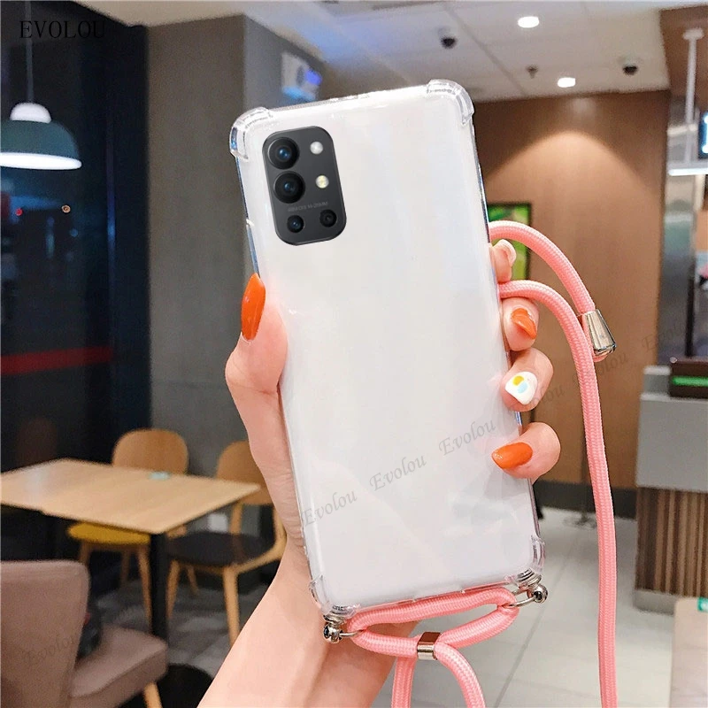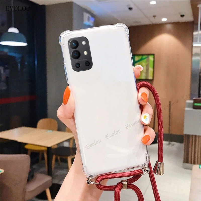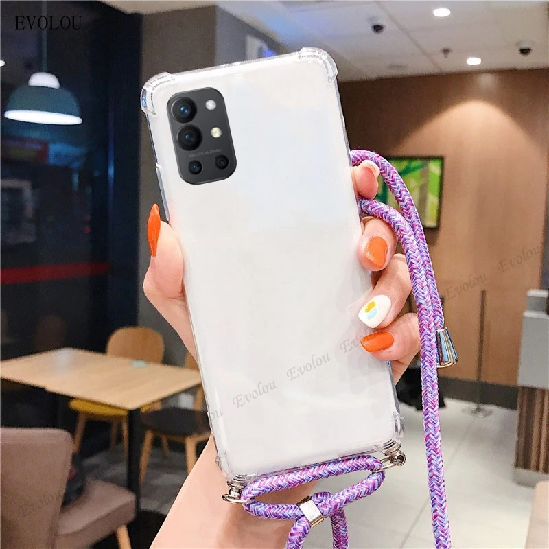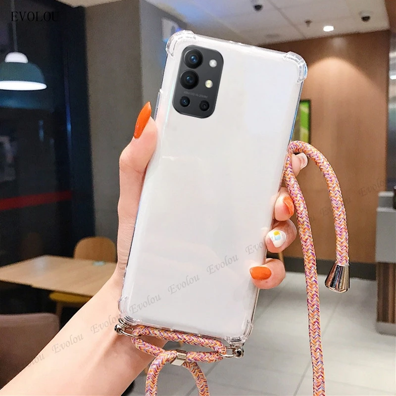 Подушка безопасности противоударный прозрачный силиконовый чехол для телефона с ремешком для Oneplus 9R 9 Pro Nord N10 N100 с плечевым ремнем ремешок задняя крышка