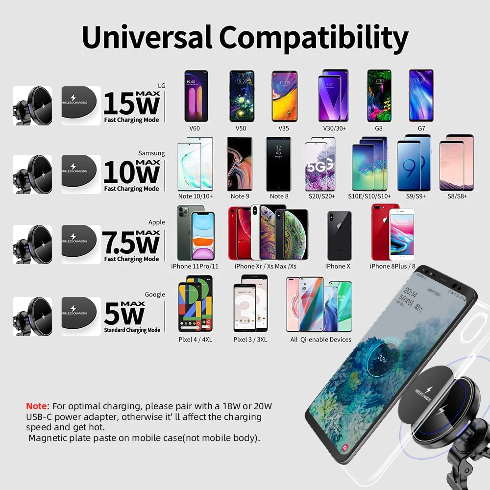Qi автомобильные беспроводные зарядные устройства, магнитное беспроводное автомобильное зарядное устройство с креплением на вентиляционное отверстие для iPhone 1213pro max, автомобильный мини-держатель для телефона с быстрой зарядкой