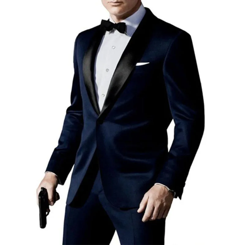 Темно-синий костюм на заказ, вдохновленный костюмом Джеймса Бонда, Свадебный костюм для мужчин, смокинг жениха, свадебные костюмы