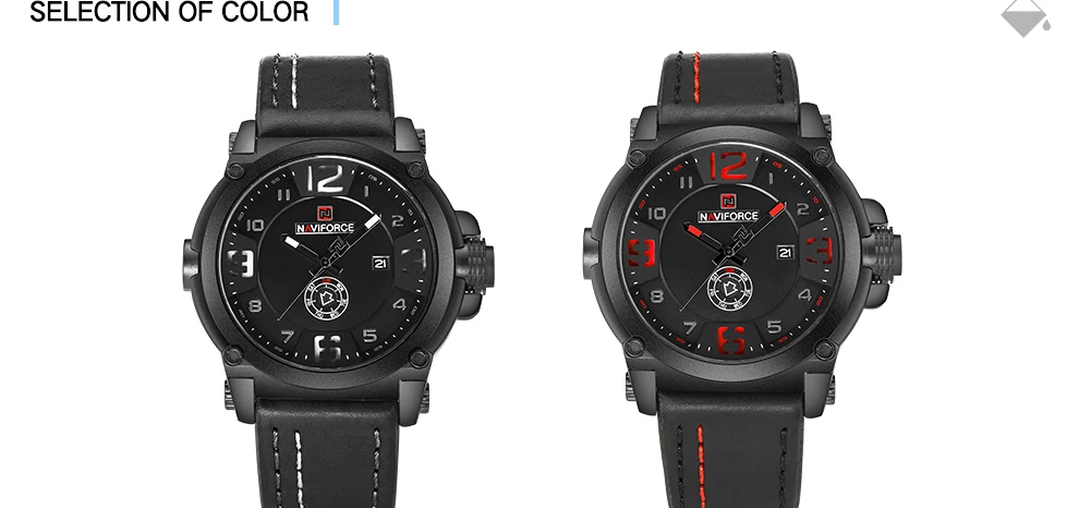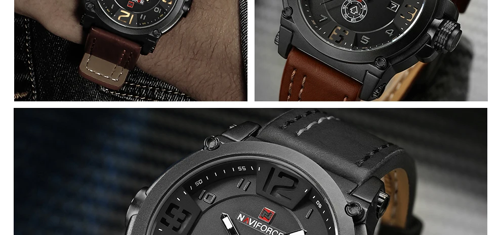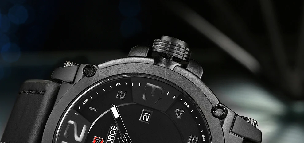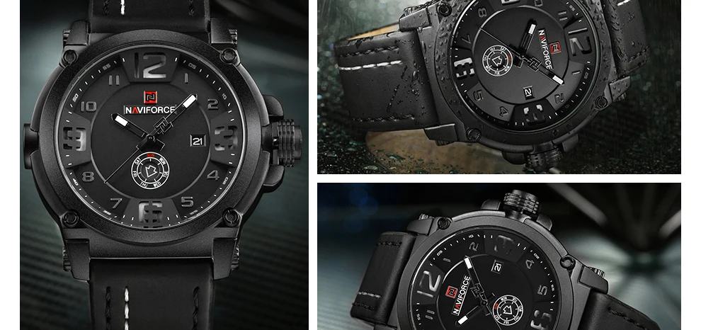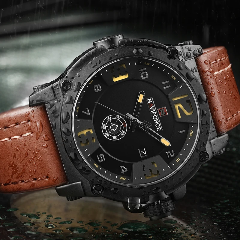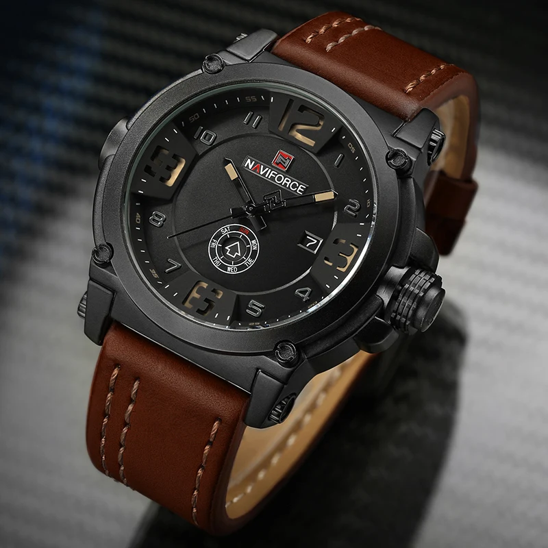 Часы NAVIFORCE Мужские кварцевые, модные повседневные спортивные водонепроницаемые в стиле милитари, с кожаным ремешком