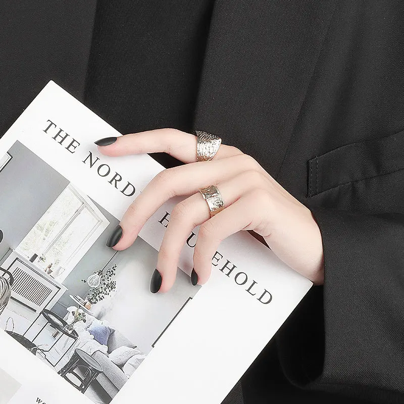 Регулируемые кольца QMCOCO для мужчин и женщин, открытые кольца с цепочкой геометрического дизайна 925 серебристый неправильной формы