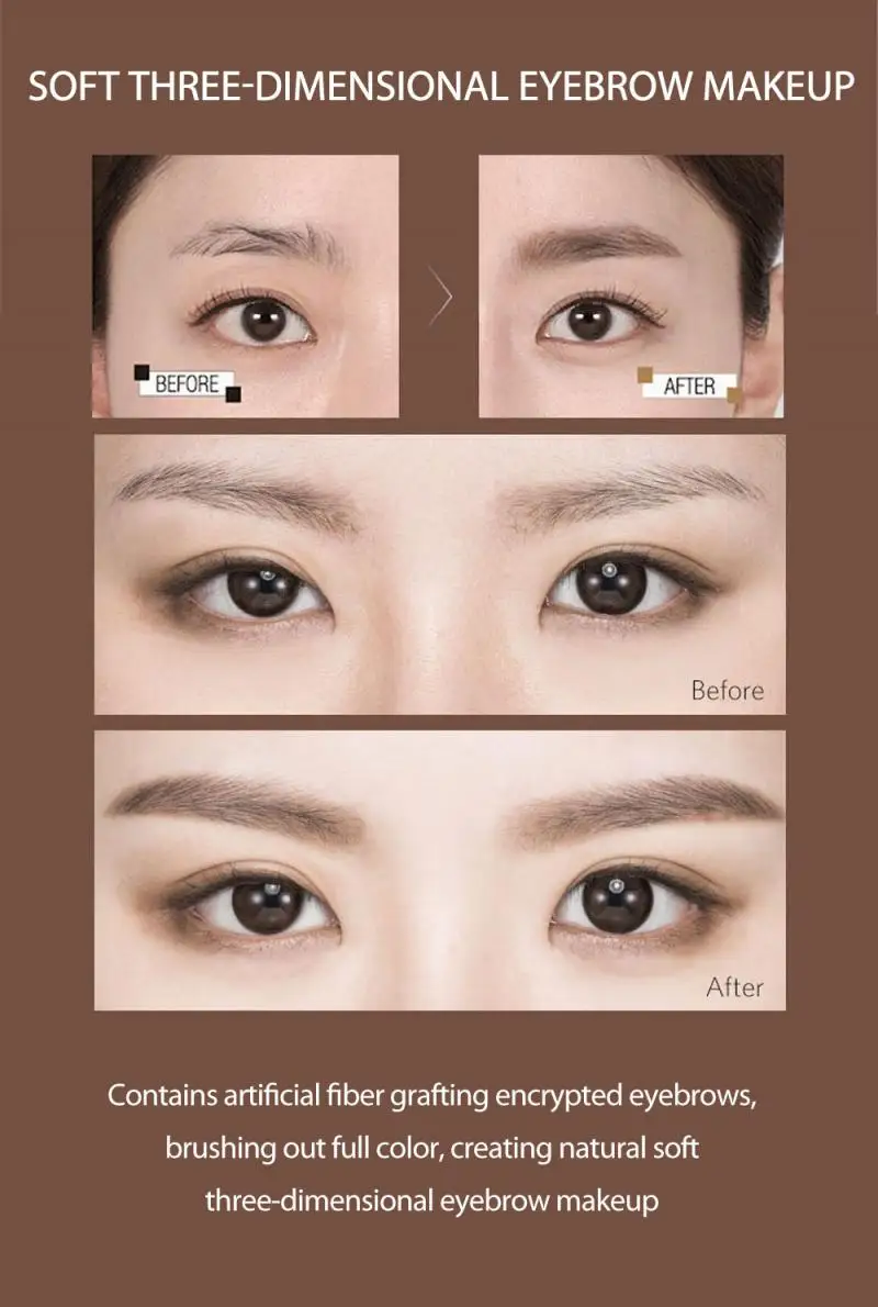 Рисует естественную и объемную форму бровей, особенно подходит для татуажа, вышивки или повреждения бровей и для фиксации макияжа.