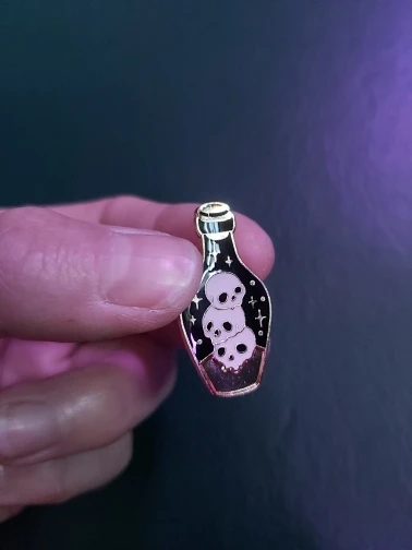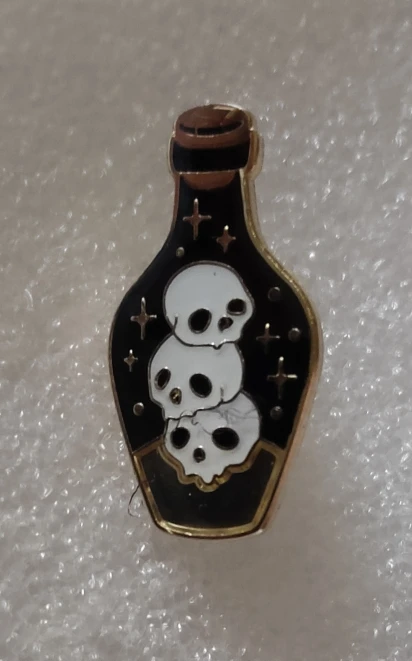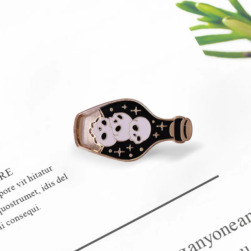 Эмалевая булавка в бутылочке с ядовитым зельем, готический череп, колдовство смерти, ювелирные изделия