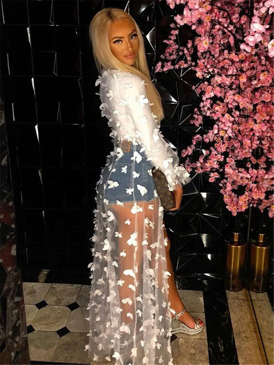 Летнее пляжное платье, накидки, сексуальные накидки для плавания, прозрачные трехмерные Длинные кардиганы с бабочками, новинка 2021