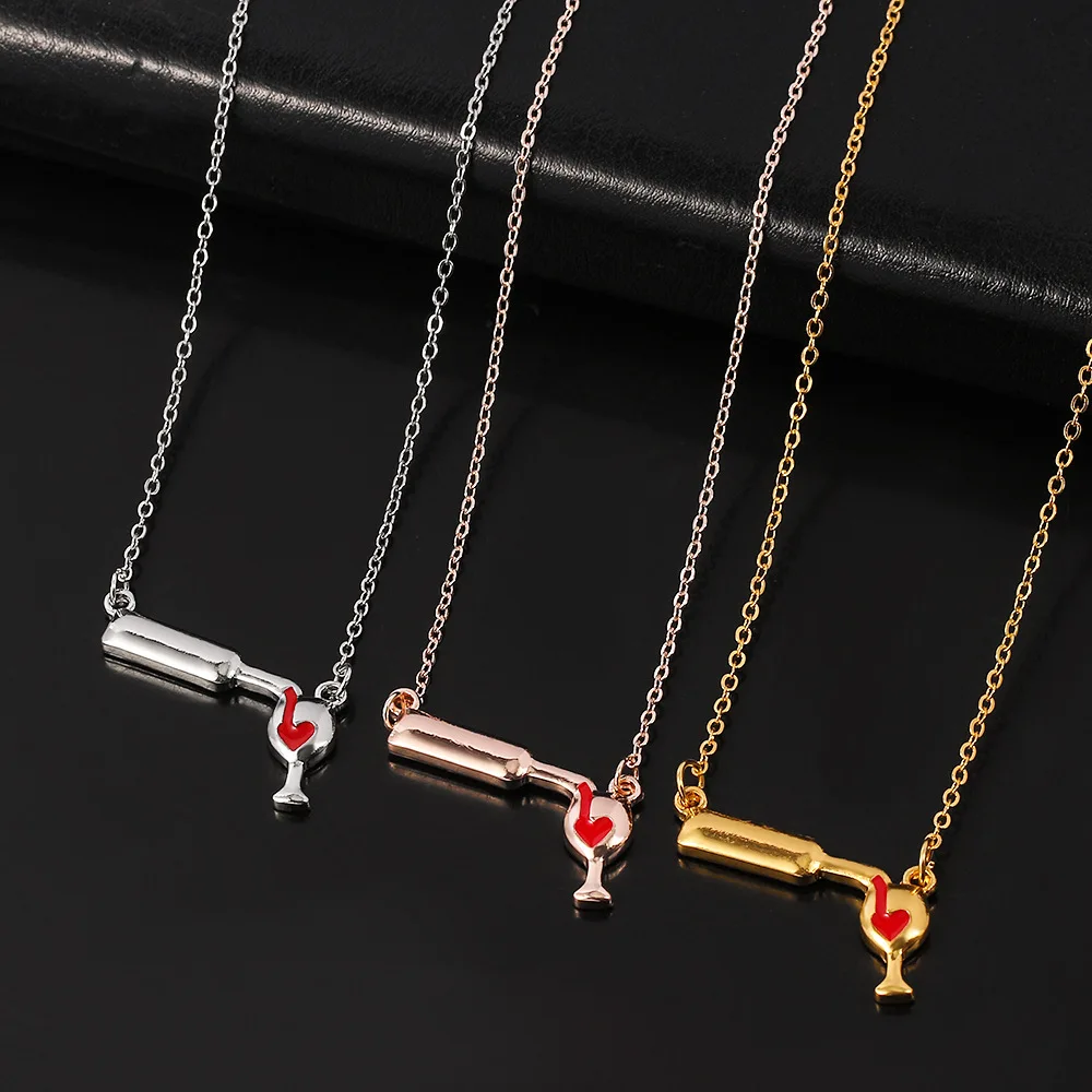 Женское Ожерелье с кулоном вина и чашки, романтическое ожерелье с п...