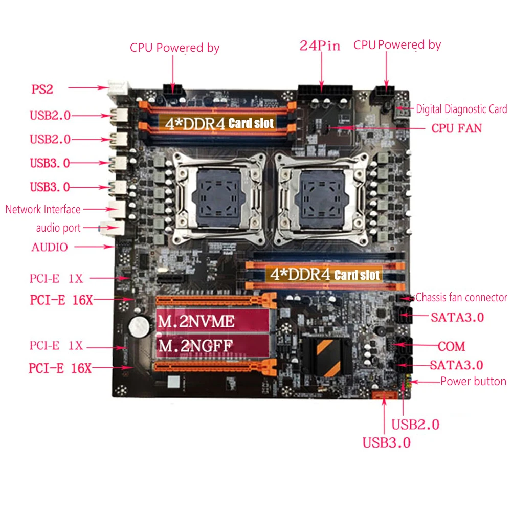 Чип X99 двухканальный ATX материнская плата SATA III 8 USB LGA 2011 процессор DDR4 RECC игровая материнская плата для настольного ПК компьютераОсобенность:-Двухканальная материнская плата X99-это высокопроизводительная двухканальная Промышленная материнская плата с процессором Intel 2011 + чипсетом x99. Конструкция с двумя процессорами обеспечивает высокую производительность. Встроенный 7-фазный источник питания с высоким уровнем качества делает работу более стабильной и высокой. Производительность, передача SSD лучше, Двухканальный режим предназначен для того, чтобы сделать скорость передачи быстрее, Единая память поддерживает до 32 ГБ памяти, встроенная 1 полная гигабитная сетевая карта, поддерживает Wake on LAN, PXE boot; Обеспечивает 4 слота PCIE.-Используйте чип Intel X99 для поддержки LGA2011-V3 pin ЦП xeon. Предоставление 8 четырехканальных слотов DDR4, Поддержка модуля памяти типа DDR4 2133/2400/2800 МГц, встроенная 5,1 канальная звуковая карта, интегрированная 100M/гигабитная сетевая карта, предоставляет 2 порта PCIEx16 1 слот PCIEx1, два порта M.2, тип NVME и NGFF, 6 портов SATA, 4 высокоскоростных порта USB2.0, 4 порта USB3.0, 1 порта PS/2, 1 COM-порт.-Высокопроизводительный и богатый интерфейс расширения X99 может применяться в таких отраслях, как открытые студии, облачные вычисления, постанимация, обработка изображений и различные терминальные рынки.Спецификация:Тип применения: Рабочий столАрхитектура материнской платы: ATXЧип: для IntelСерия чипсета: X99Тип гнезда процессора: LGA 2011Поддержка типа процессора: Поддержка процессора LGA2011-V3Встроенная звуковая карта: ALC662Встроенная сетевая карта: со встроенной сетевой картойКарта изображения: карта независимого изображения, поддержка карты CrossfireСтандарт поддержки карт изображений: PCI Express 16XПоддержка типа памяти: DDR4Интерфейс жесткого диска: SATA IIIКоличество USB-интерфейсов: 8Вес изделия: 1200 гКанал памяти: 4 каналаМаксимальный объем памяти: 128 ГБПоддержка нескольких изображений: SliПоддержка дискового массива: ПоддержкаКоличество поддерживаемых сетевых карт: 1Цвет: черныйМатериал: пластикРазмер: 290X280 мм/11,42X11,02"Примечание:Из-за большого количества поставок в ИТ-индустрии цвета объединительных планов, слотов памяти и материалы для вставки каждой партии продукции на заводе могут меняться, поэтому, пожалуйста, не используйте его в качестве стандарта для описания консистенции продуктов. Но мы гарантируем, что описанные функции материнской платы не изменятся.В связи с различиями мониторов и эффектами освещения реальный цвет товара может немного отличаться от цвета на фотографиях. Спасибо!Возможно отклонение в 1-3 мм вследствие измерений вручную.