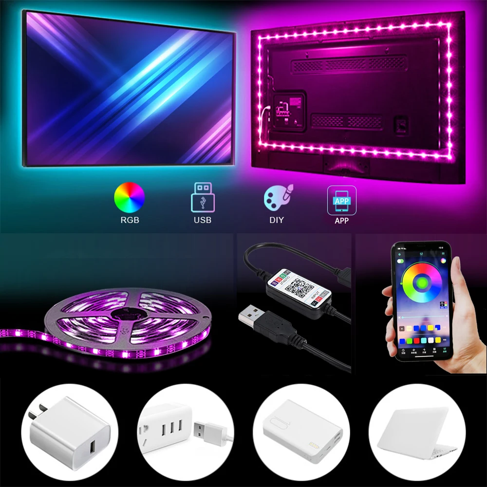 Светодиодная лента с USB, 5 в постоянного тока, 50 см, 1 м, 2 м, 3 м, 5 м, гибкая светодиодная Usb-лампа RGB 5050 с Bluetooth-управлением для украшения дома, подсветка для телевизора