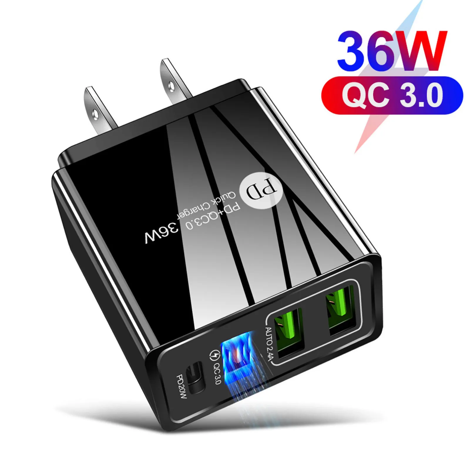 Зарядное устройство USB C PD, 36 Вт, быстрая зарядка QC 3,0, адапте...