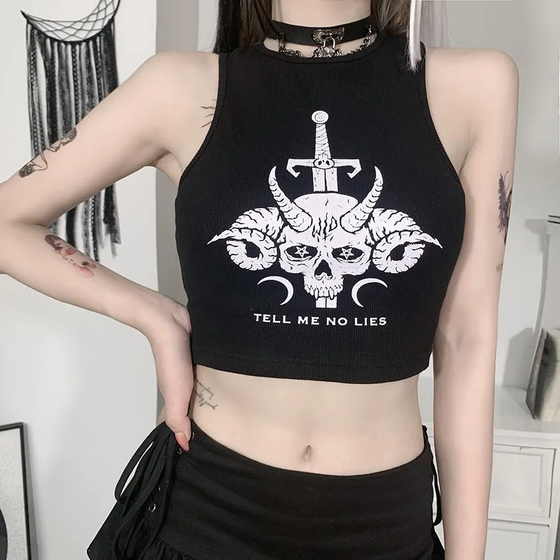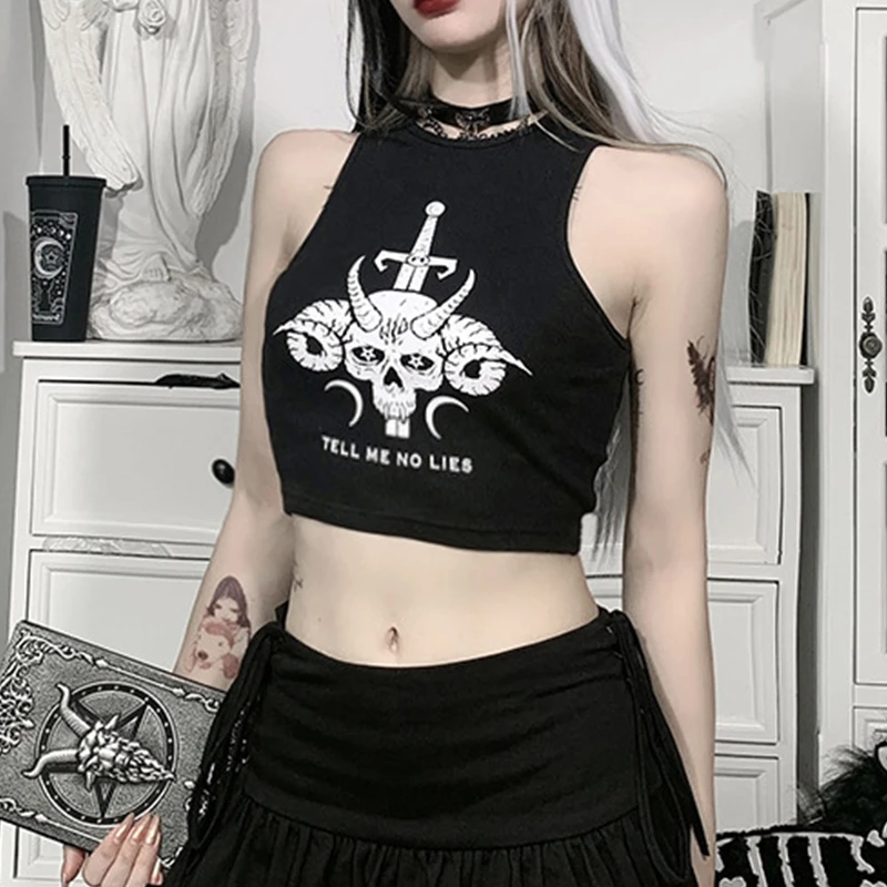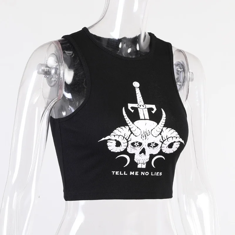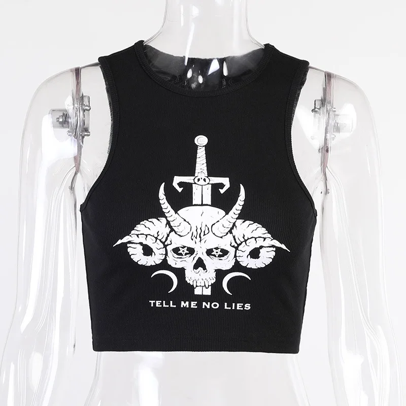 Женский топ без рукавов, с круглым вырезом и принтом скелета