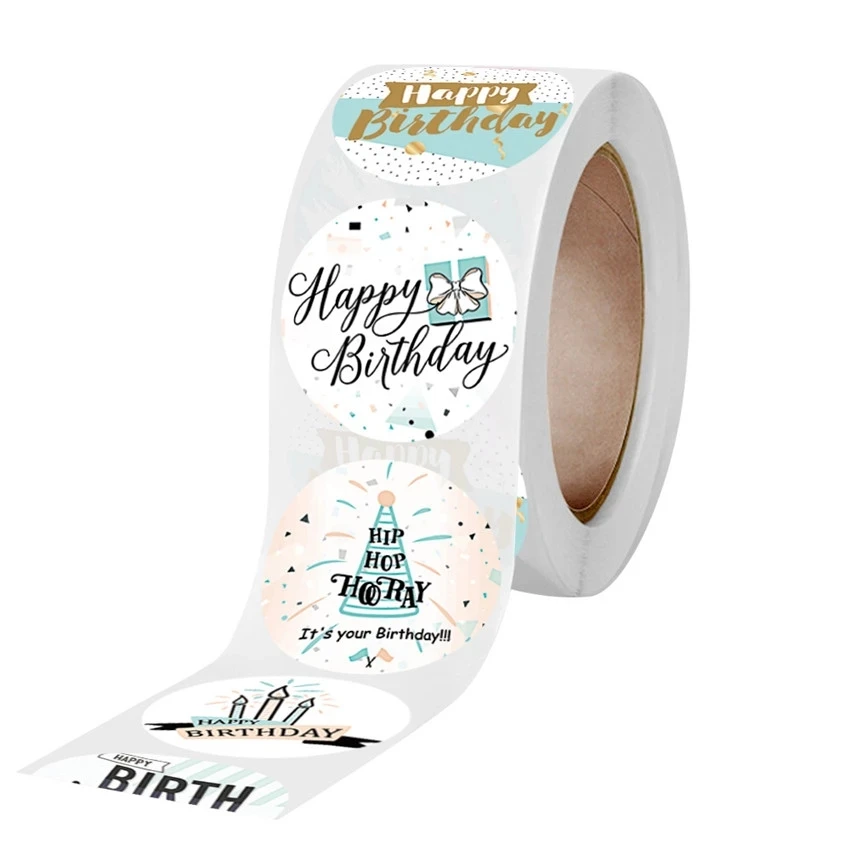 500 шт.рулон стикеры "День рождения" Подарочный пакет этикетки для ...