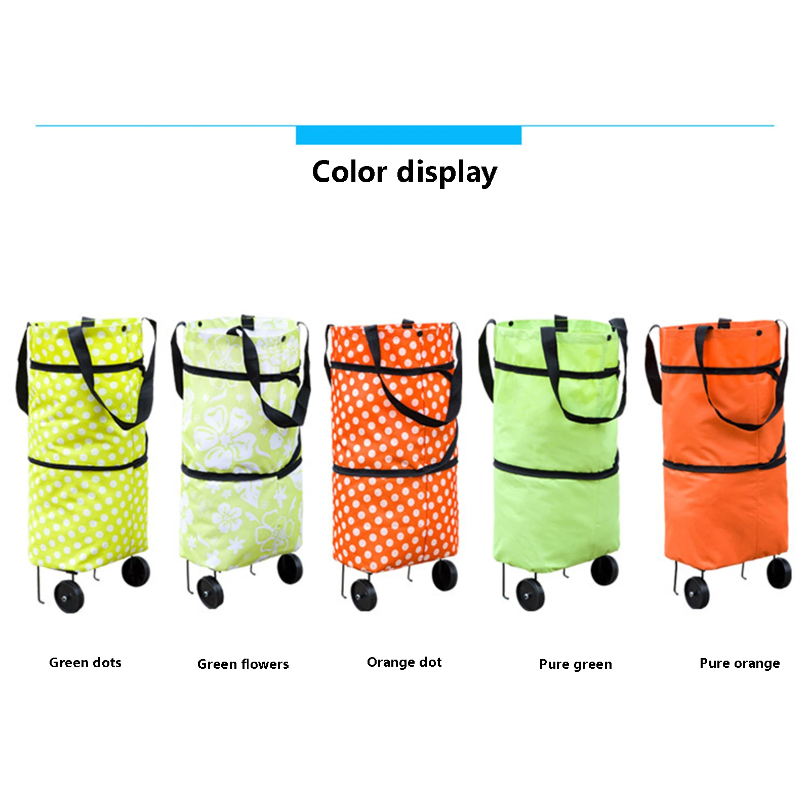 Складная сумка для покупок, однотоннаяс принтом, Портативная Сумка-тележка для хранения со складными колесами