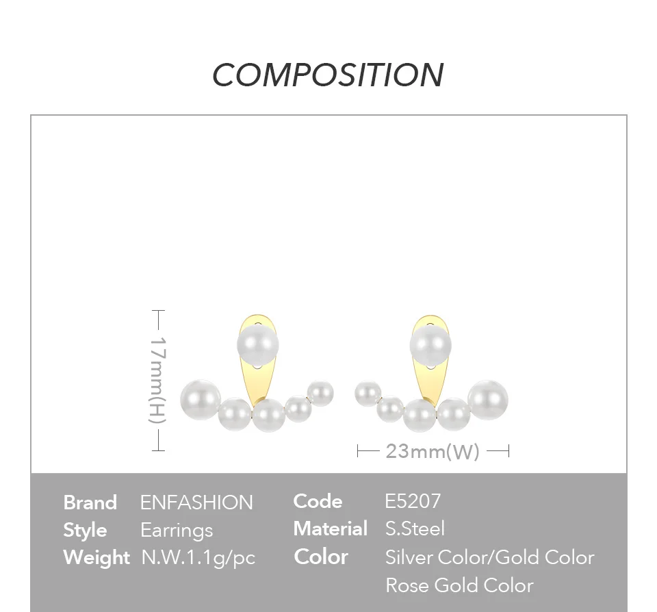 Серьги-гвоздики ENFASHION из нержавеющей стали женские, милые серьги золотистого цвета с жемчугом для пирсинга, Подарочная бижутерия, E5207