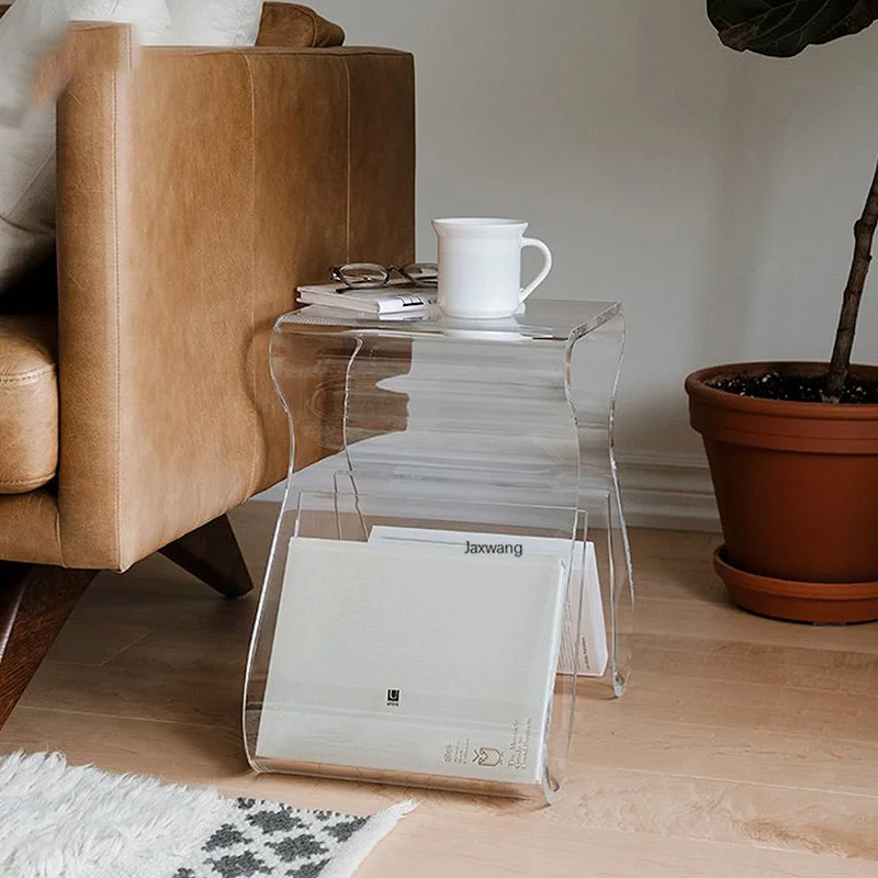 Журнальные столики, акриловый прозрачный стеклянный приставной столик для гостиной, маленький квадратный угловой Хрустальный столик, мини-простая книжная полка