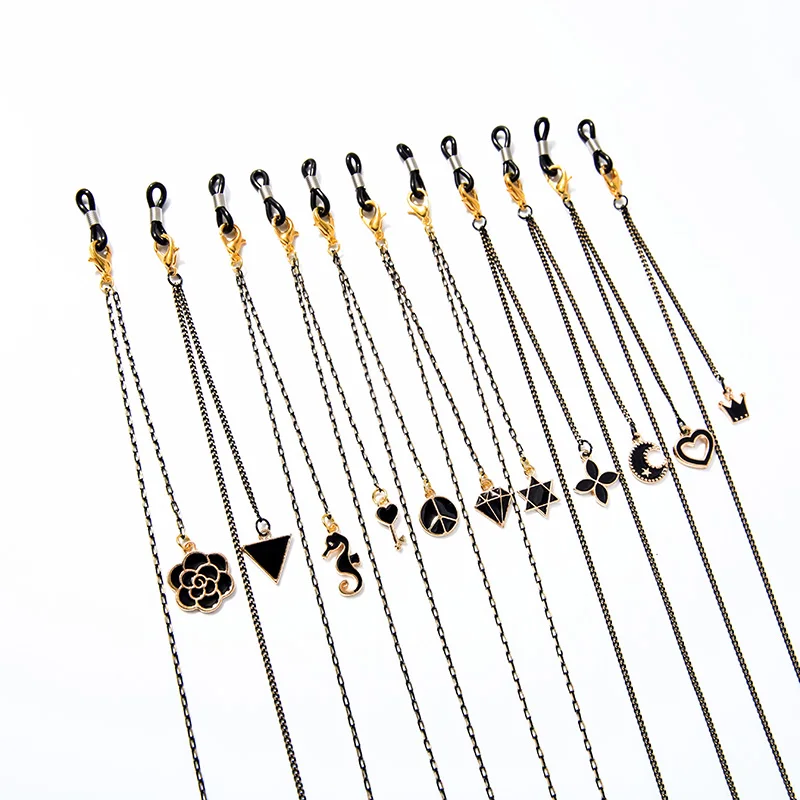 Панк маска солнцезащитных очков шнурки цепи черно-белый эмалированный Корона Креста Луна, Звезды кулон очки цепь Модные аксессуары для женщин