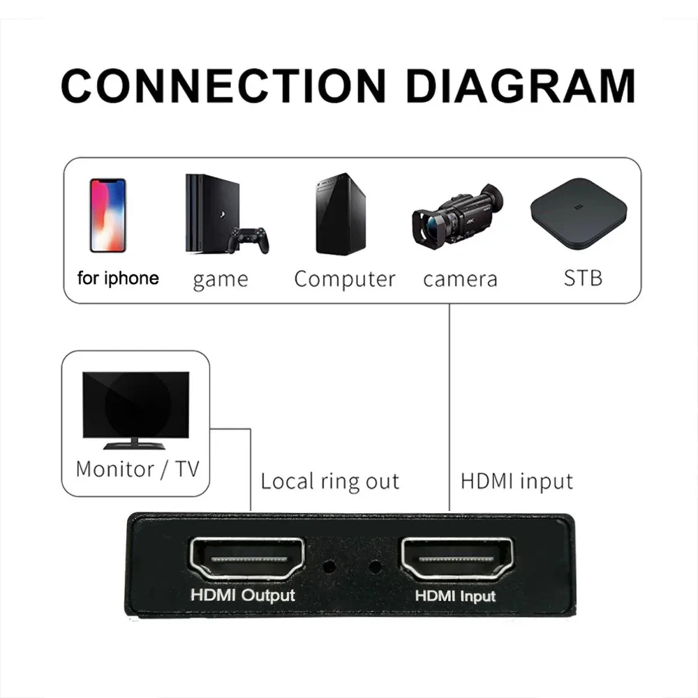 4KUSB 3,0Карта видеозахватаОписание товара:1. Он может захватывать один HD HDMI видео сигнал;2. Запись видео сигнала до 1080P/60 Гц, HDMI вход поддерживает 4K/60 Гц; Выход петли 4K60HZ3. Совместим с UVC видеозахватом и YUV422 видеовыходом;4. Поддержка UAC и UVC протокола, поддержка 48 кГц PCM аудио частота дискретизации;5. Нет необходимости устанавливать драйвер, это действительно подключи и работай;6. Совместимость с ОС Windows 7, 8, 8,1, 10 или более поздней версии, операционной системой Linux, Mac OS;7. USB3.0, полоса пропускания 300 ~ 350 МБ/с./с, совместим с USB 2,0;8. С микрофоном микрофон аудио вход; С выходом для наушников9. Он может автоматически обнаруживать формат входного видео и автоматически регулировать размер и частоту кадров;10. Он может автоматически обнаруживать входной аудиоформат и преобразовывать его в аудио 48 кГц PCM;11. Несколько контактных палочек можно использовать на одном ПК;12. Качество изображения более четкое, цветовая гамма RGB составляет 0 ~ 255, а задержка лучше;13. Поддержка всех сторонних вечерние программ, совместимых с UVC и UAC протоколами;Параметры продукта:Размер карты захвата: 102*60*15 смРазрешение HDMI: 4096*2160 @ 60 ГцПолоса пропускания HDMI: 6,8b/sРасстояние передачи HDMI: input≤ 15 мИнтерфейс USB: USB3.0Скорость USB: 300 ~ 350 МБ/с./с, совместимость с USB 2,0Разрешение выхода USB: 1080p 60 ГцДлина кабеля USB ''62 смМикрофон аудио вход, выход для наушниковМатериал корпуса: корпус из алюминиевого сплаваПрограммное обеспечение для приобретения: Поддержка VLC, OBS, Amcap и т. д.Совместимая системная Платформа: совместима со всеми системамиДиапазон рабочих температур: от-10 до + 55 ℃Упаковочный лист:Карта захвата USB3.0 HD + Кабель USB3.0 + руководство
