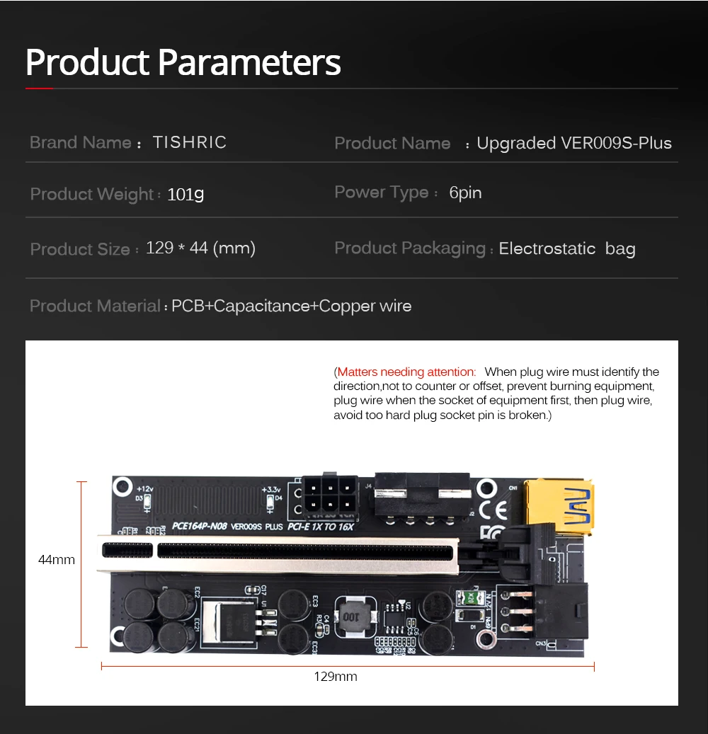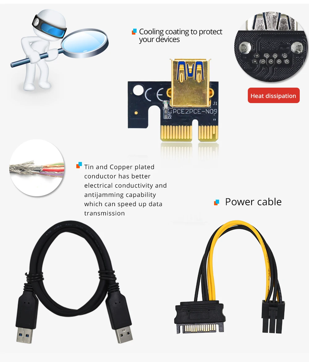 10 шт. TISHRIC Модернизированный VER009s PCIE Riser 009s Plus Кабель Riser Express X16 SATA 15 контактов на 6 контактов USB 3,0 адаптер для майнинга