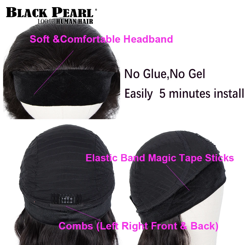 Парик из парик с головной повязкой натуральных волос, с черными жемчужинами, легко накладывается, бразильский парик, парик с головной повязкой натуральный парик